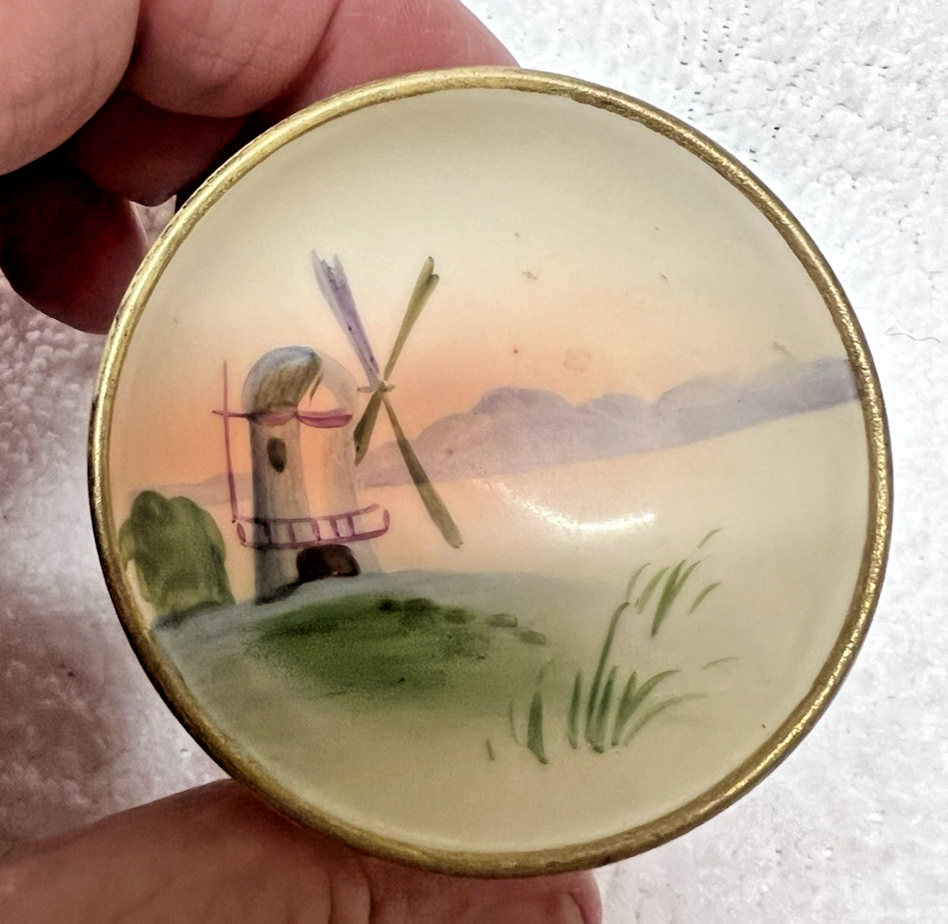 Hand Painted Nippon Windmill Pedestal Open Salt Dip 2 1/8 W x 1 1/4 W In Great shape the gold rim has just slight wear