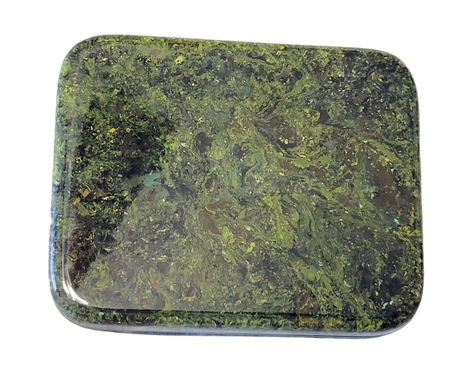 Ici, nous avons une belle ?uvre de paysage du tres populaire artiste Mitusov de Fedoskino. Cette ?uvre s'intitule " VIEILLE BANQUE DE LA RIVIERE DE MOSCOU ". Le pont sur la voie navigable, vous pouvez voir un effet de nacre et sur la riviere où les bateaux se deplacent a travers la riviere. Sur le fond de la boîte et sur les cotes, vous pouvez voir qu'elle a un aspect marbre, mais qu'elle est faite de paer mache d'une maniere absolument merveilleuse d'incorporeronote une magnifique peinture sur le dessus mais les cotes de la boîte sont tout simplement spectaculaires. La boîte est peinte a la main et signee par l'artiste Mitusov. La taille de la boîte est de 5 x 3,75 x 1 pouces (13,5 x 10 x 2,5 cm). Materiaux utilises pour peindre la boîte : tempera, or 18 carats, aluminium, huile de lin et