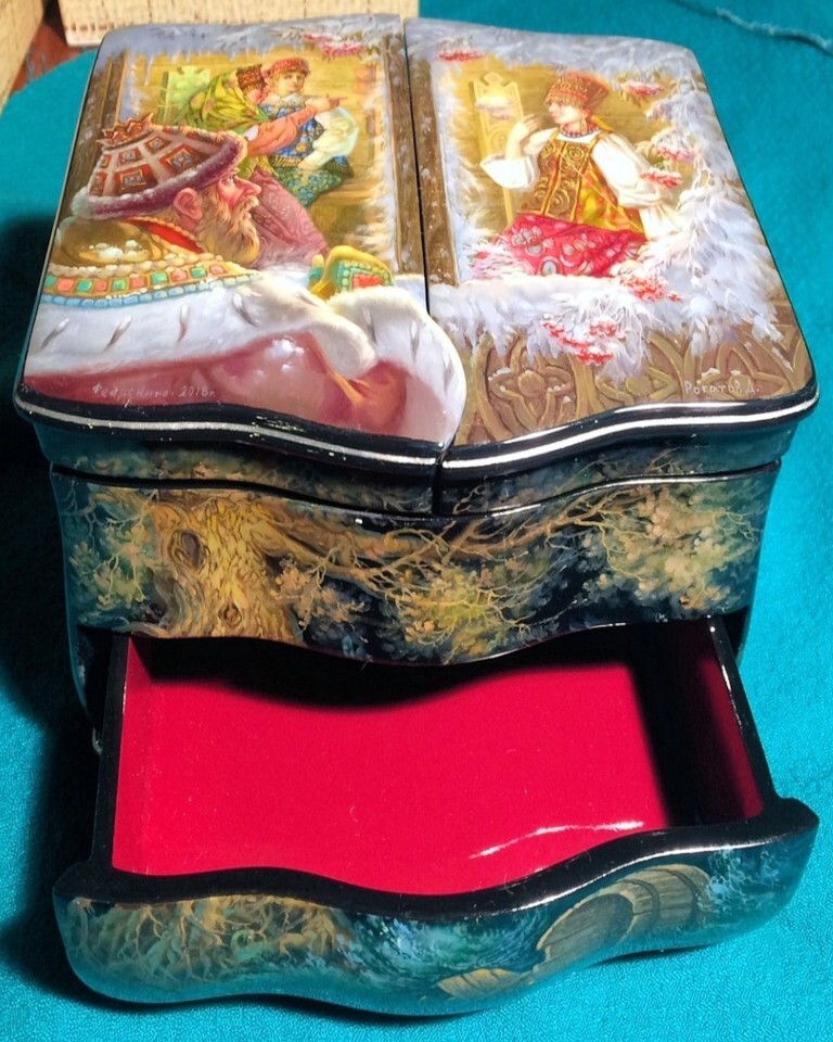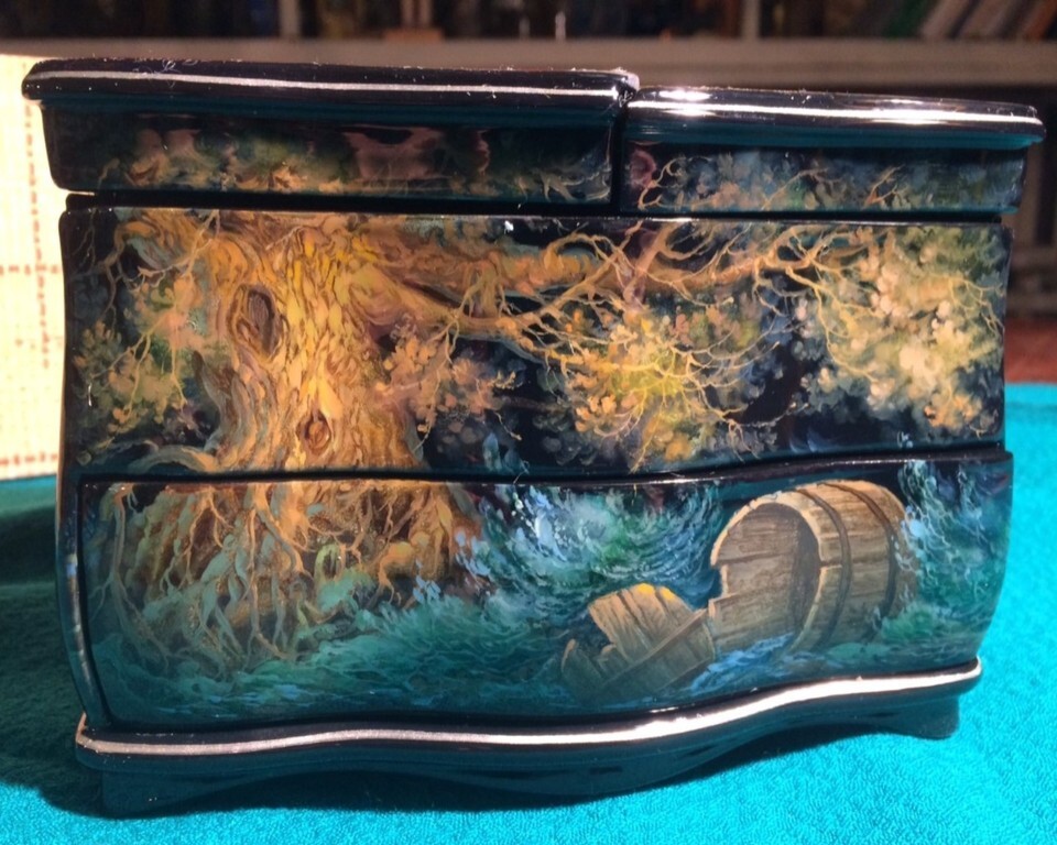 - Hand Painted One Of A Kind Russian Lacquer Box "Tales Of Tsar Saltan"- show o...
