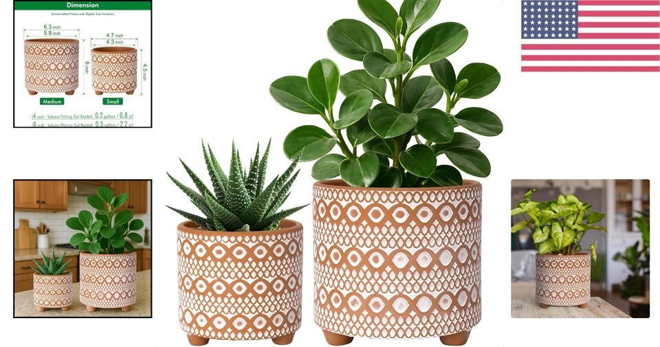 Hand-Painted Terracotta Planters, 4 6 Inch, Stable Base for Stylish Interiors
