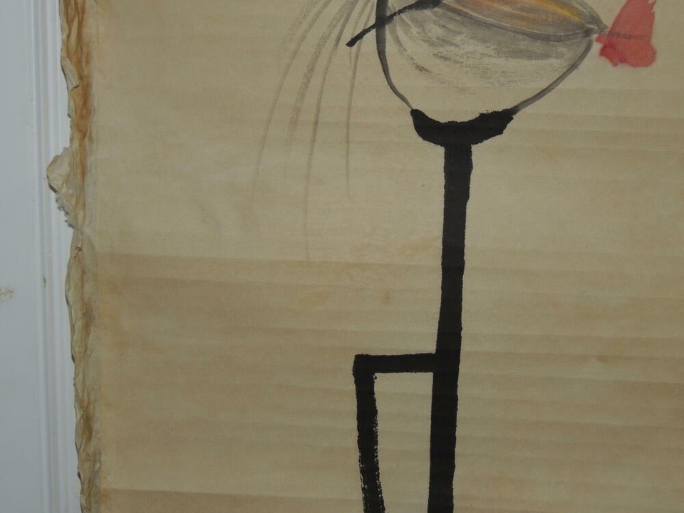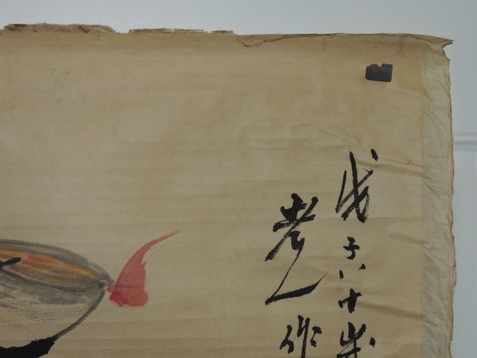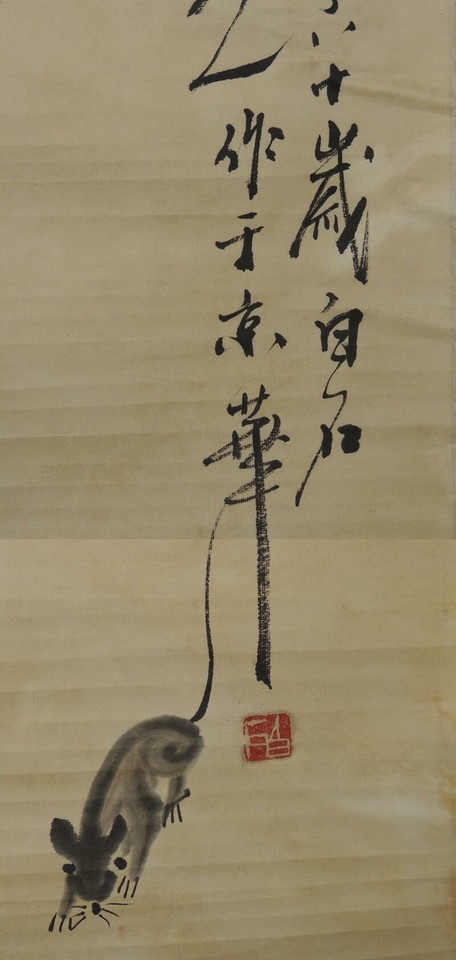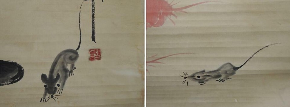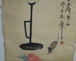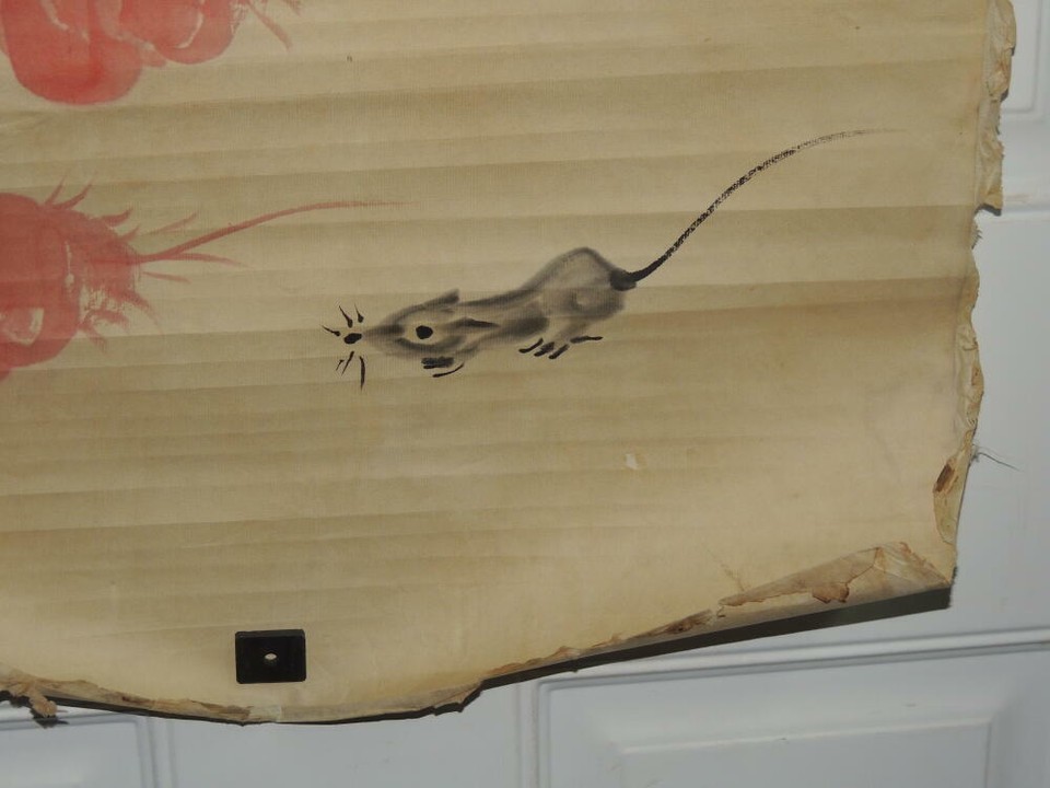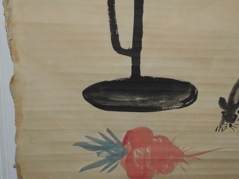 - Hand Painted Watercolor 35"x19" Painting Oil Lamp Mice & Carrots poss Qi Baishi