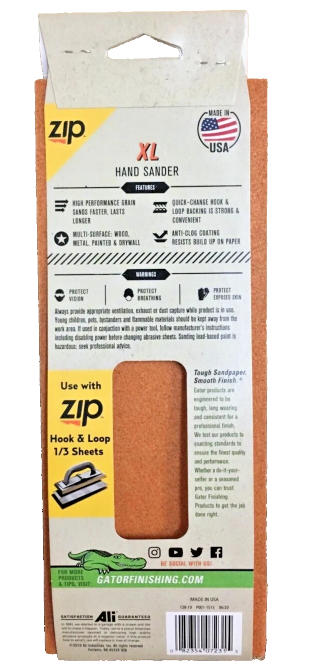 Tackle large sanding projects with ease using the Gator ZipXL Series 7231 Hand Sander, a durable and lightweight tool designed to deliver professional results for both contractors and DIY enthusiasts. With a wide 3-1/2-inch sanding surface and a 9-1/2-inch length, this hand sander is perfect for smoothing drywall, prepping wood, and finishing flat surfaces.