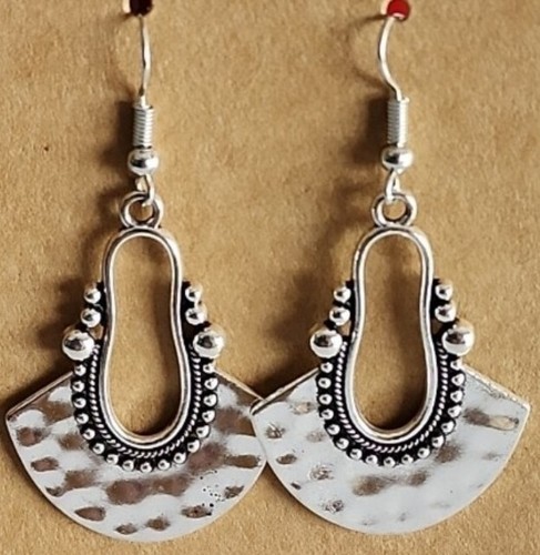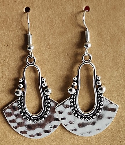 Handcrafted ~ 2" Dangle Earring ~ Silver Geometric Drop Pierced Earrings (102)