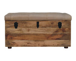 Combining rustic charm with practical functionality, this storage trunk is handcrafted from 100% Solid Mango Wood in a warm Oak-ish finish.