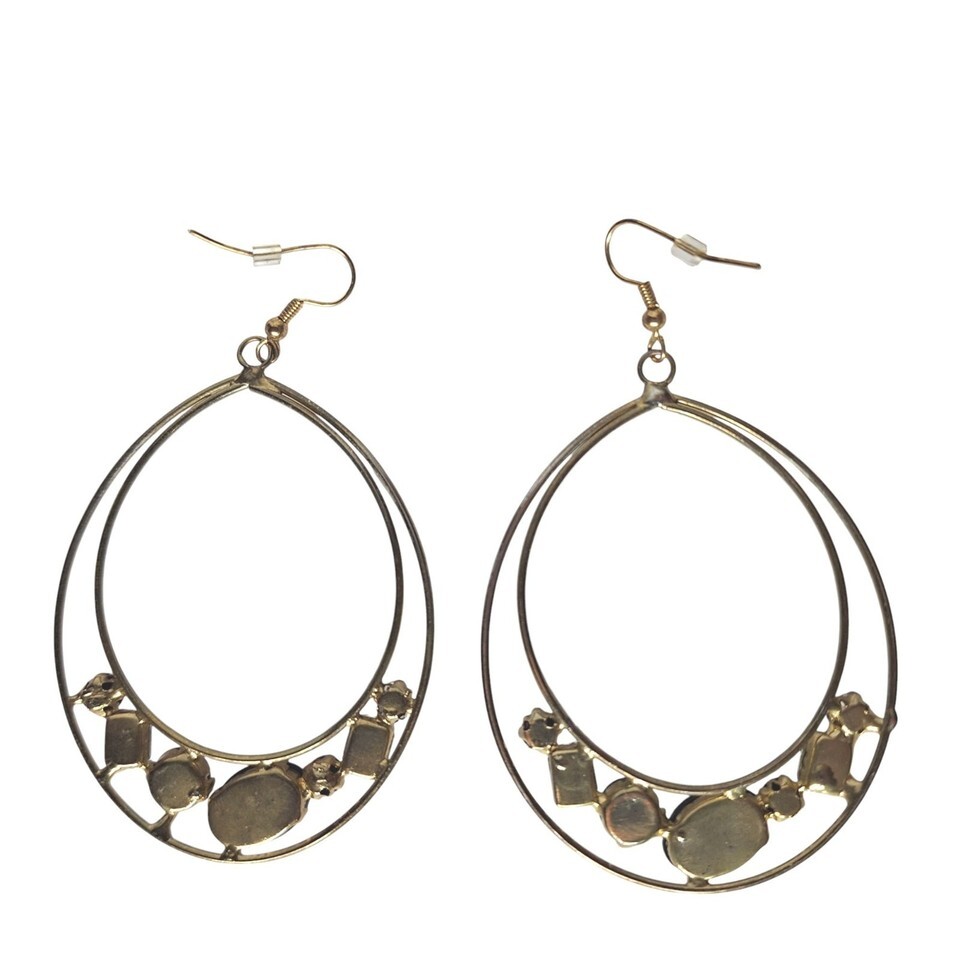 - Handcrafted Teardrop Earrings Gold Frame Mixed Stones Artistic Boho Dangle