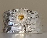 Handcrafted ~ Two-Tone Silver ~ Gold Wide Band ~ Sunflower Ring ~ Women's Size 9