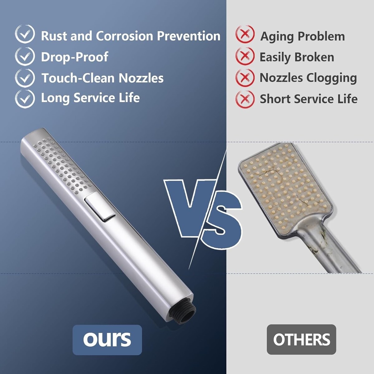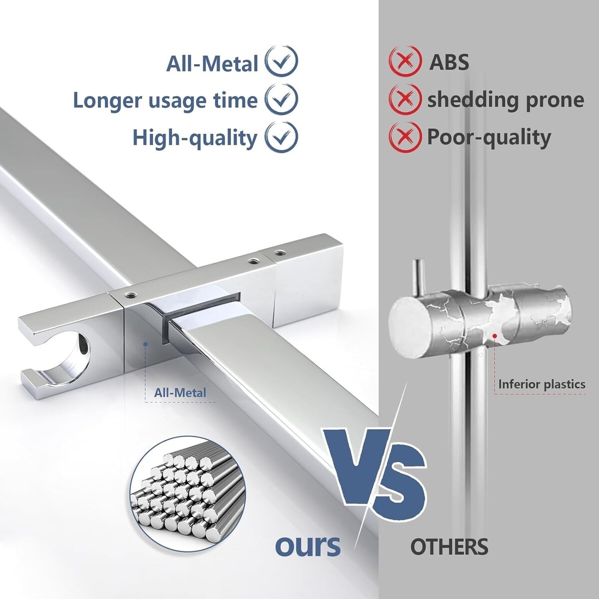 High-Quality Material, Built to Last: Hand shower with slide bar is made of high-quality metal and resistant to bending or denting, it excels in resisting rust and corrosion, making it perfect for humid environments like bathrooms