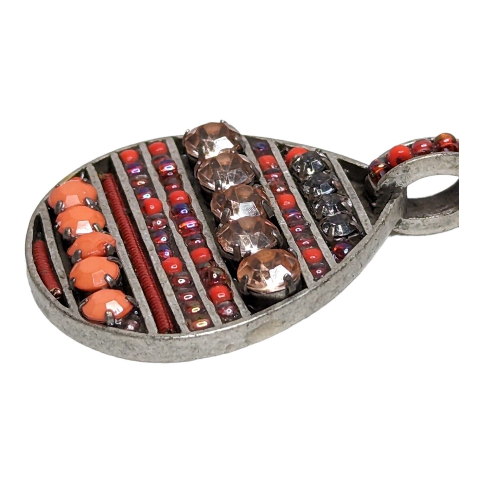 - Handmade Artisan Pink Beads & Rhinestone Silver Metal Necklace Pendant