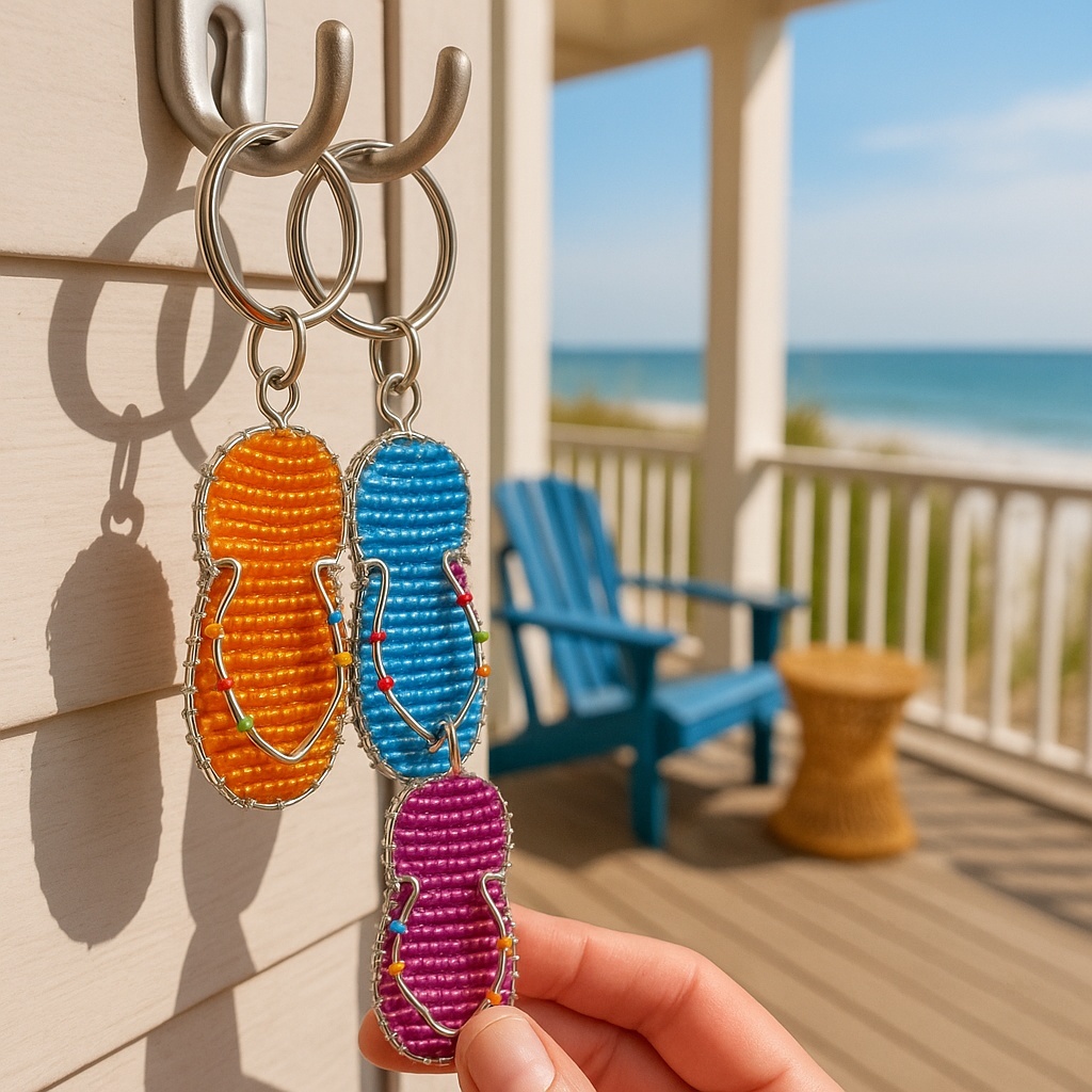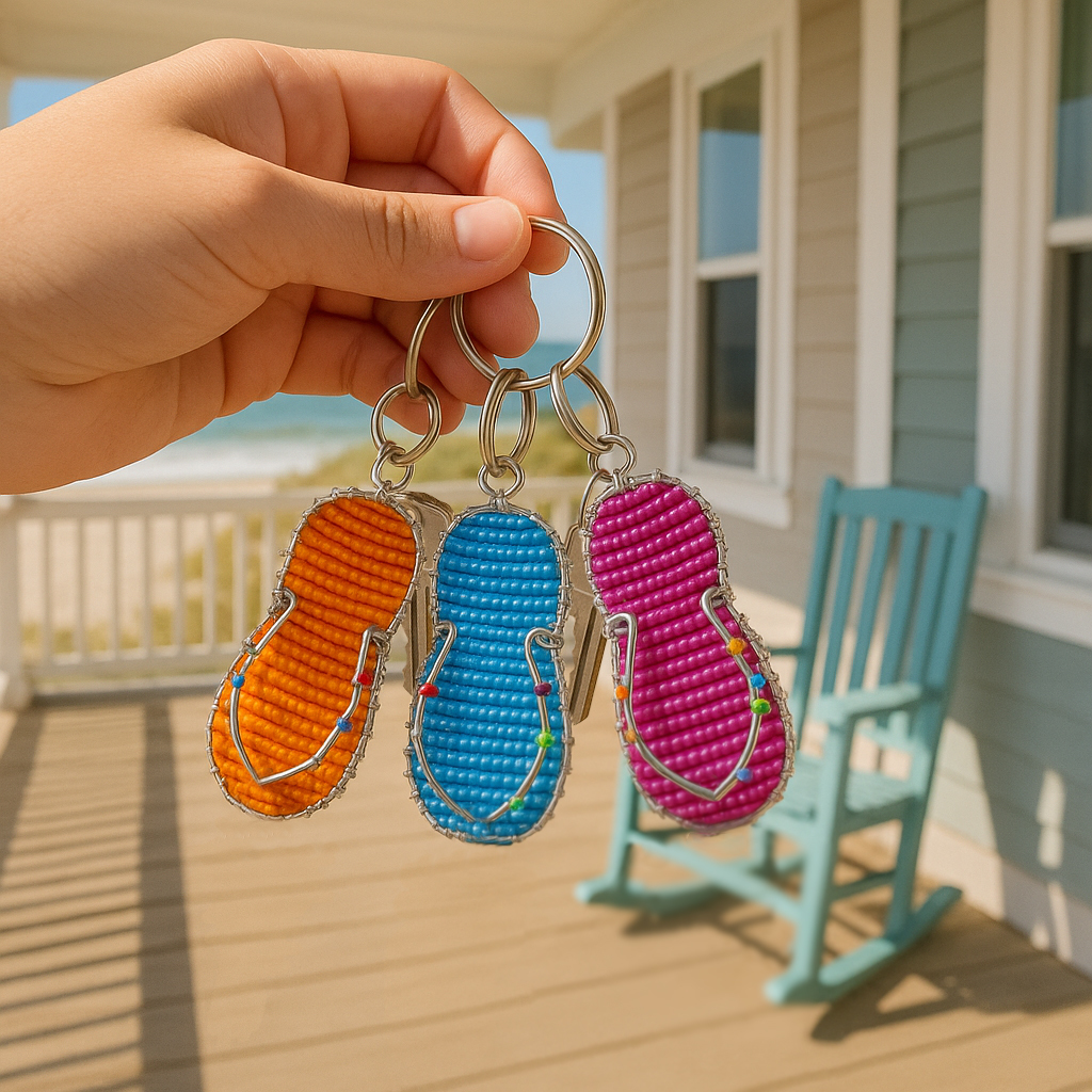 - Handmade Beaded Flip Flop Keyring – Haitian Artisan Bag Charm.