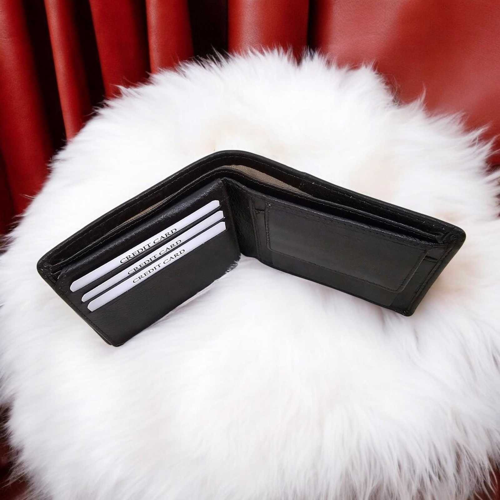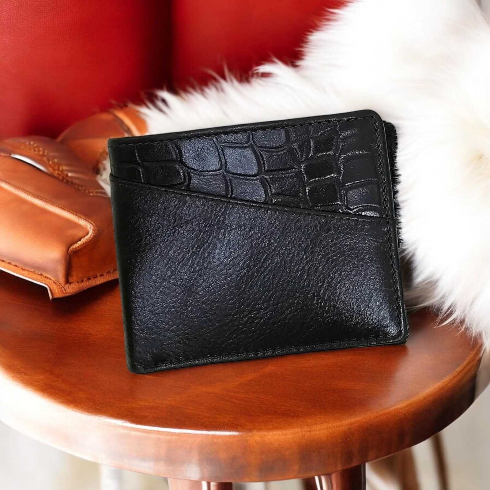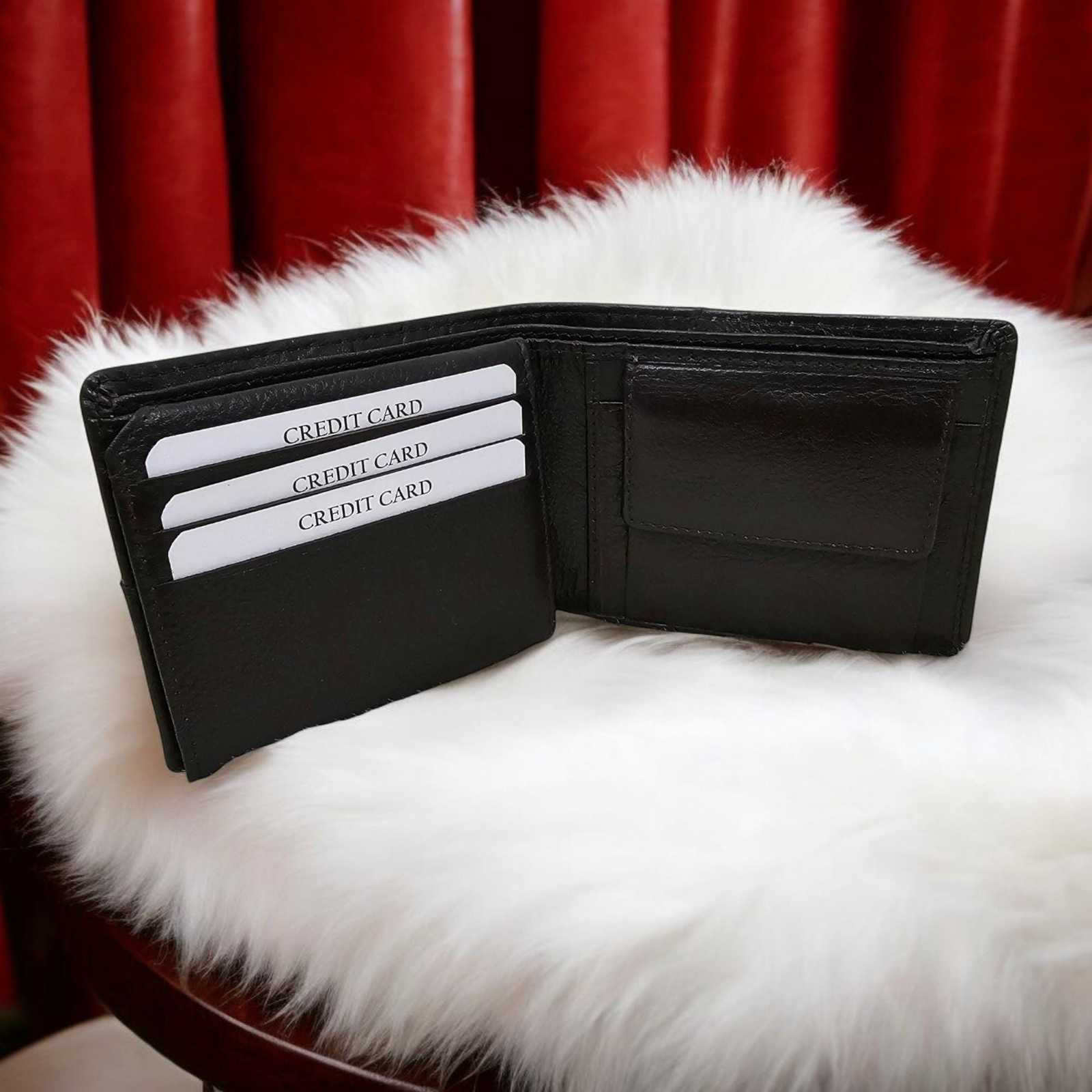 Refine your daily essentials with this Black Leather Bifold Wallet. Crafted from premium full?grain leather, this wallet features a slim side?flip design that offers excellent storage and organization while maintaining a sleek, minimalist profile. Perfect for men who appreciate durability, style, and practicality.
