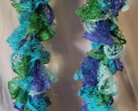 - Handmade Blue Teal Green Ruffle Scarf Crochet Boho Soft Clothing Accessories
