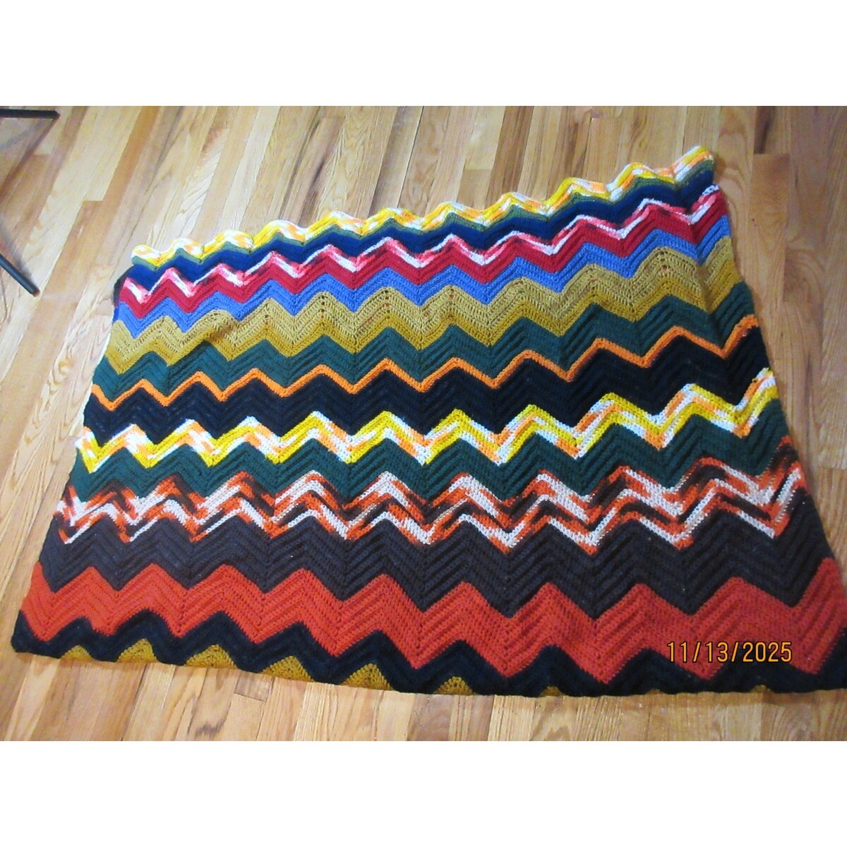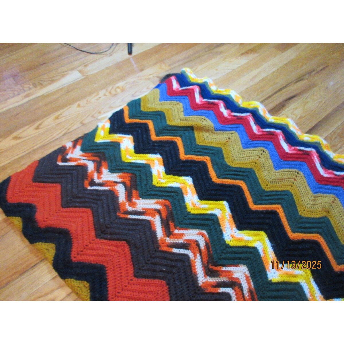 - Handmade Chevron Crochet Blanket Throw Multi Color Cozy Warm