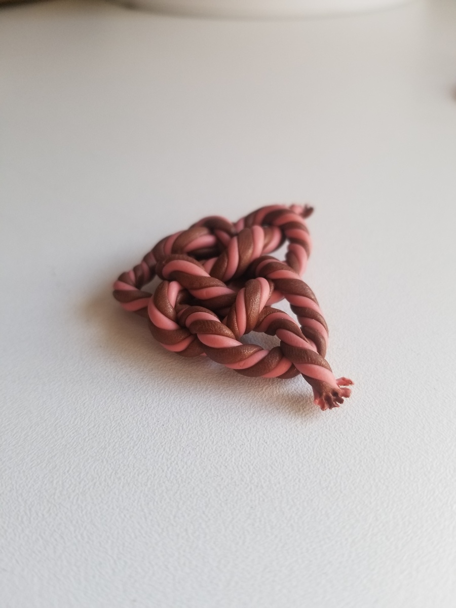 Handmade Clay Heart Knot Rope Magnet. Magnet is a Neodynium 10x2mm magnet. Clay is glazed with a satin glaze.