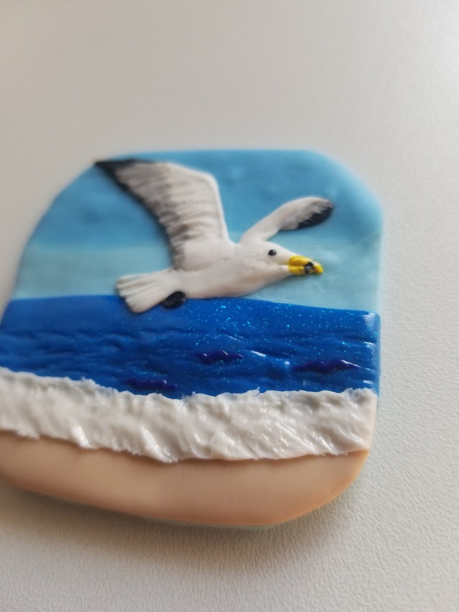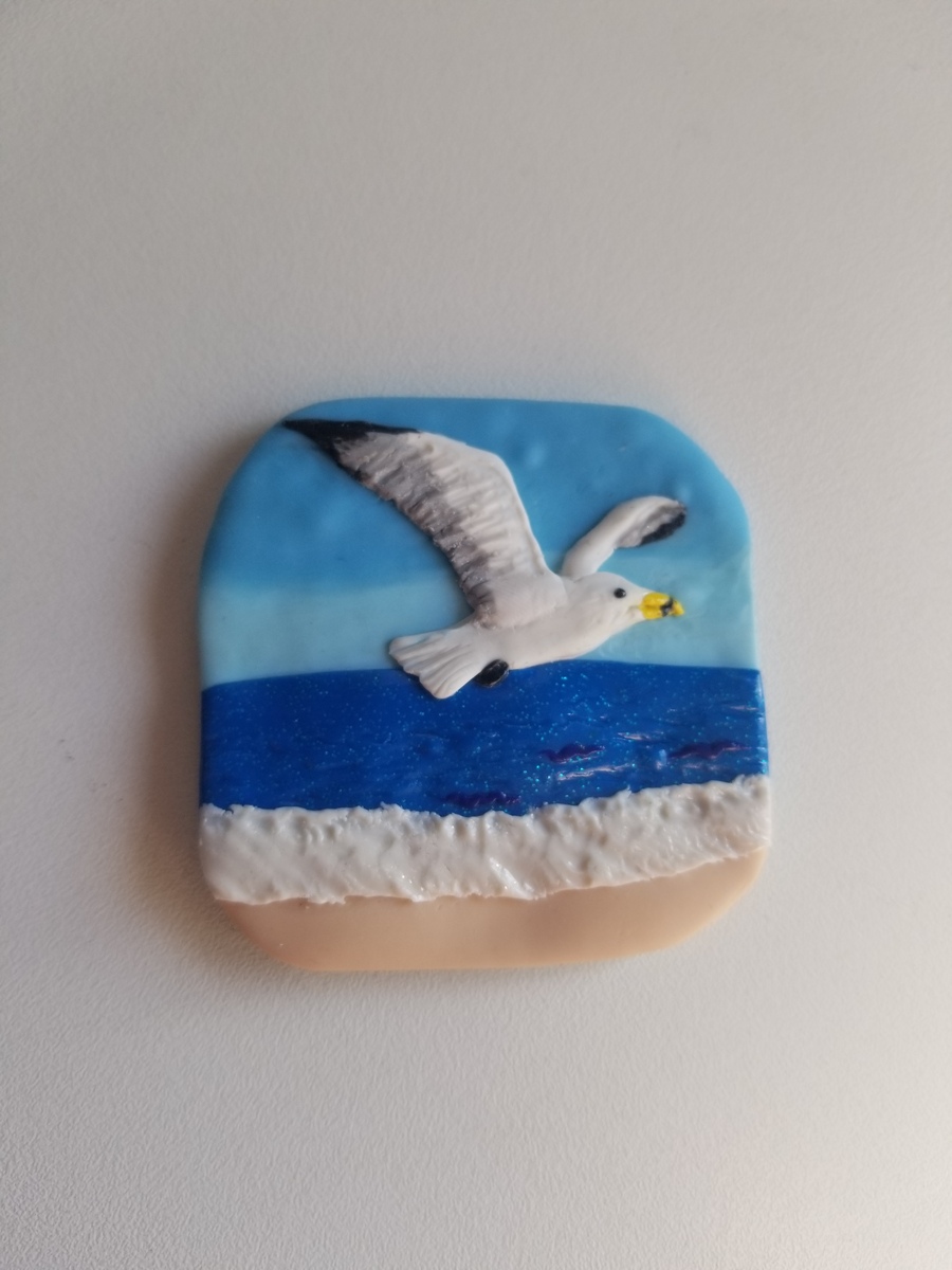 - Handmade Clay Seagull Beach Artwork Magnet