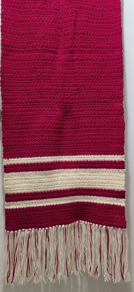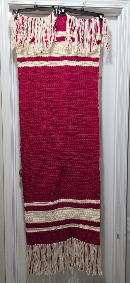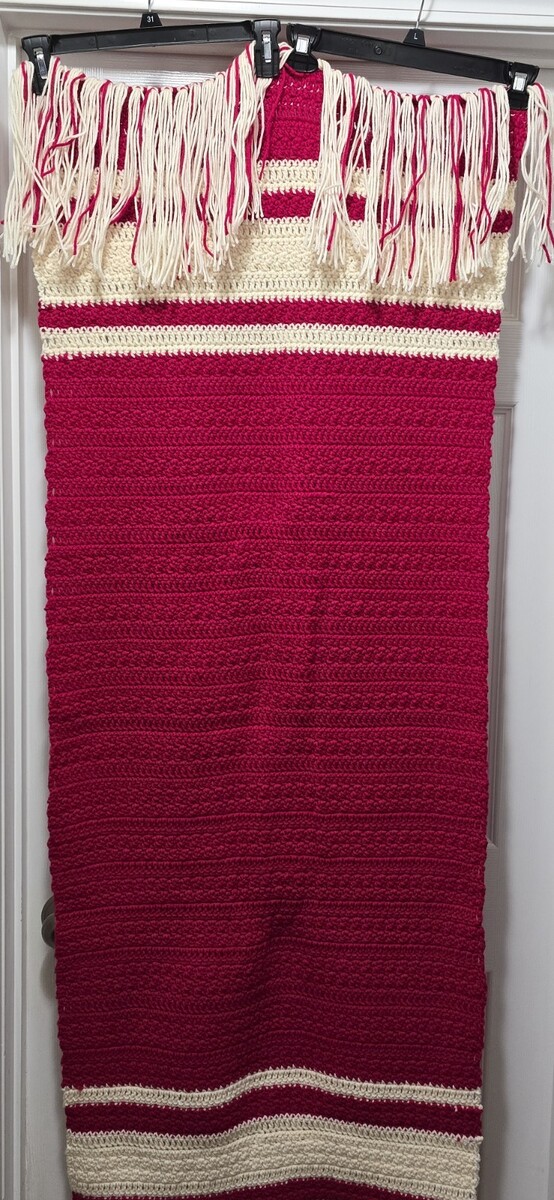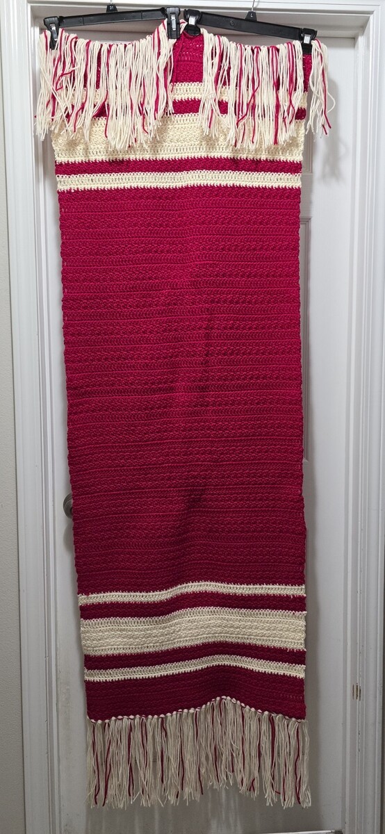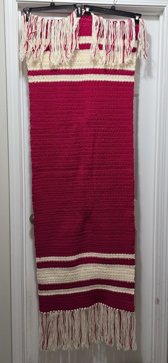 Excellent Condition Handmade Crochet Afghan Lap Blanket Sofa/Couch Throw Runner Pink-White 67"x24"