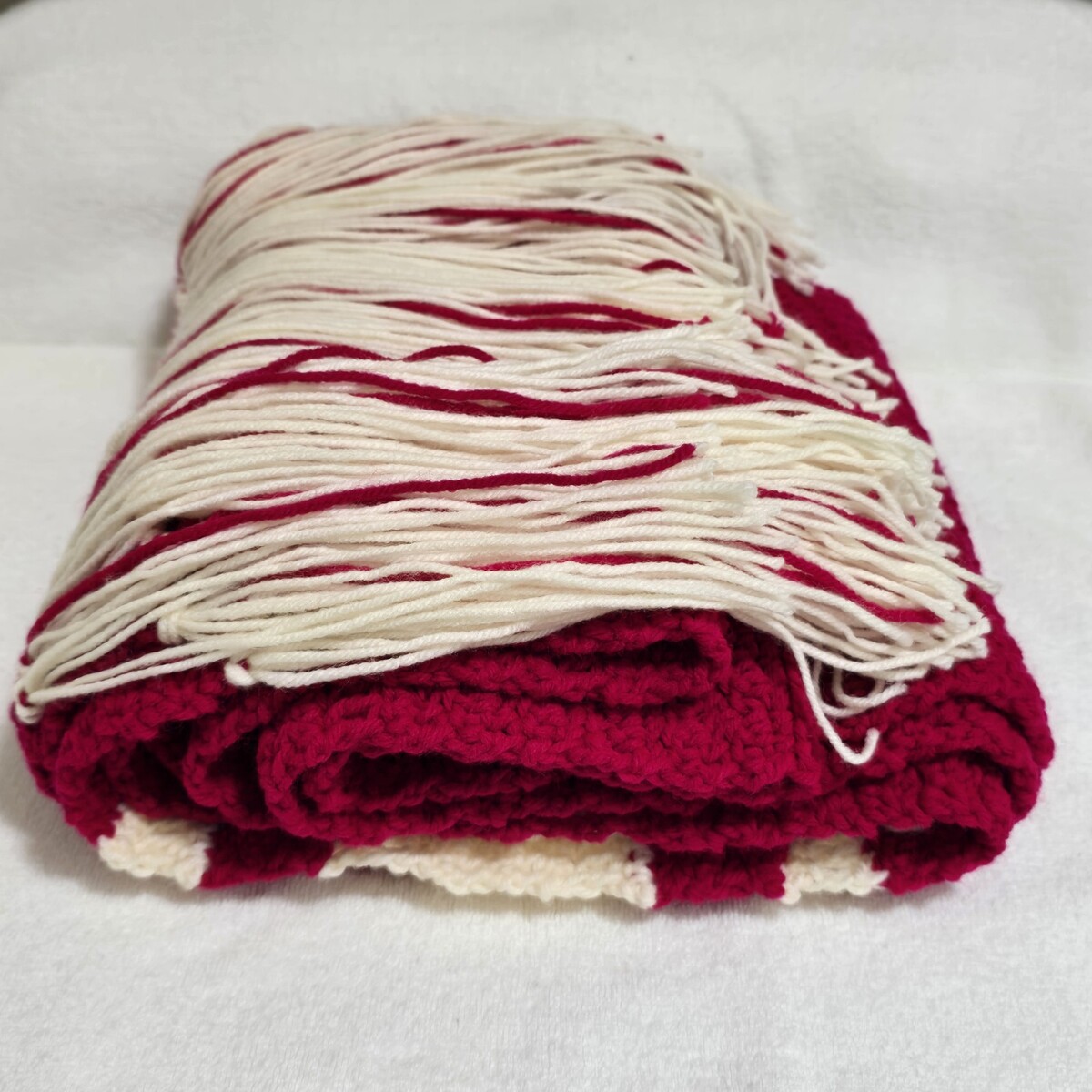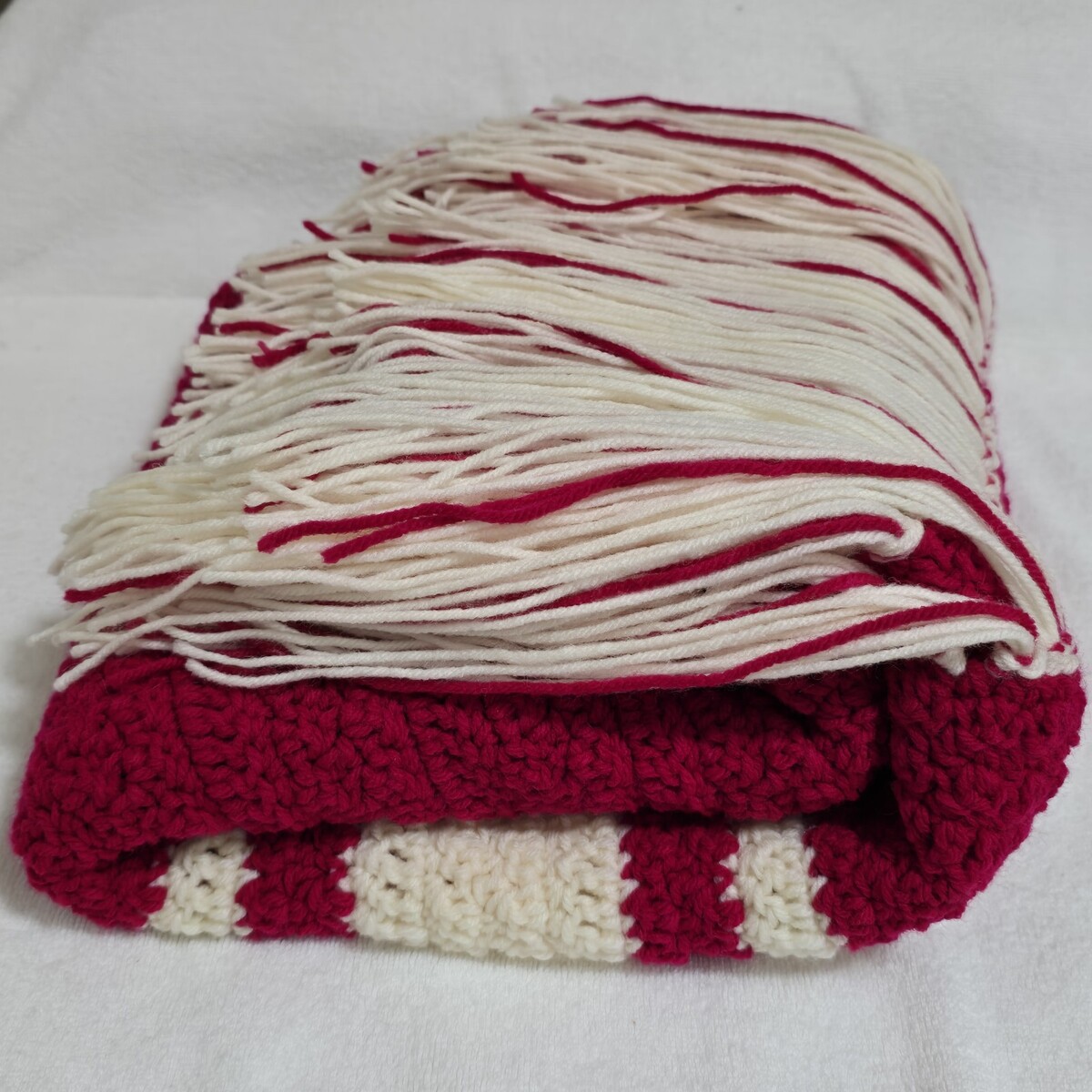 - Handmade Crochet Afghan Lap Blanket Sofa/Couch Throw Runner Pink-White 67"x24"