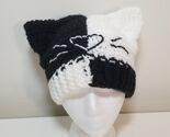 - Handmade Crochet Black & White Cat Ear Beanie with Whiskers