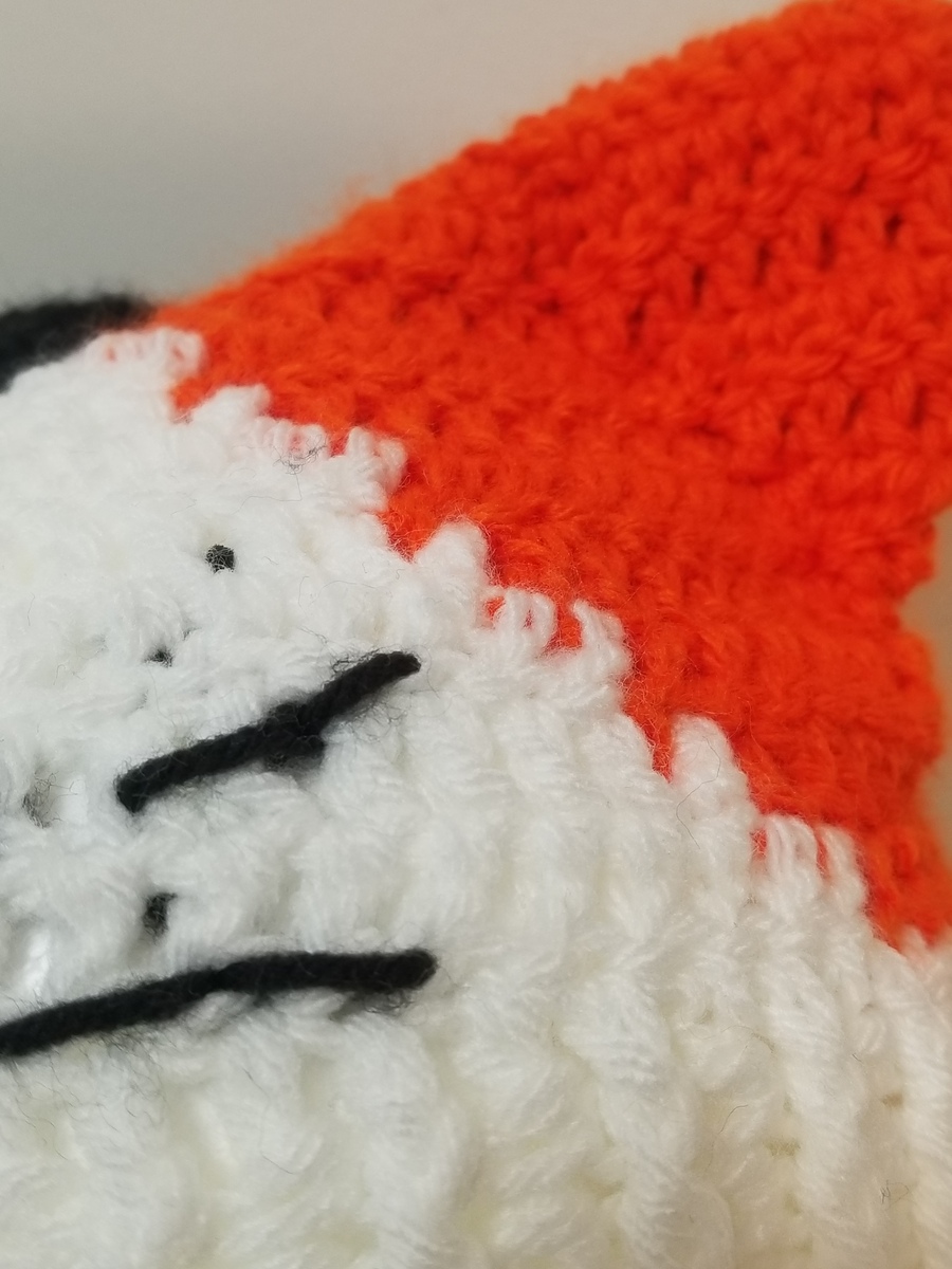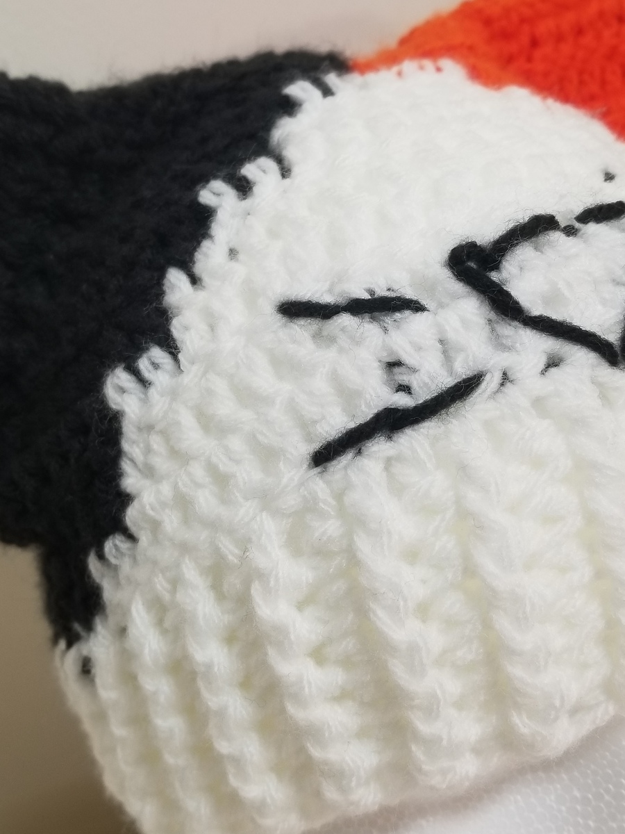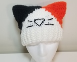 Handmade Crocheted Calico Cat Ear Beanie Hat with Black Whiskers! Hat is made from Acrylic Polyester yarns and is nice and warm for cold weather! Perfect for a gift or to keep you warm and cute!