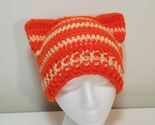 Handmade Crocheted Orange Striped Cat Ear Beanie Hat! Hat is made from 100% Polyester and is soft and warm for cold weather! Perfect for a gift or to keep you warm and cute!