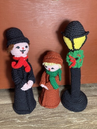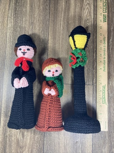 - Handmade Crocheted Christmas Holiday Carolers w Lamppost