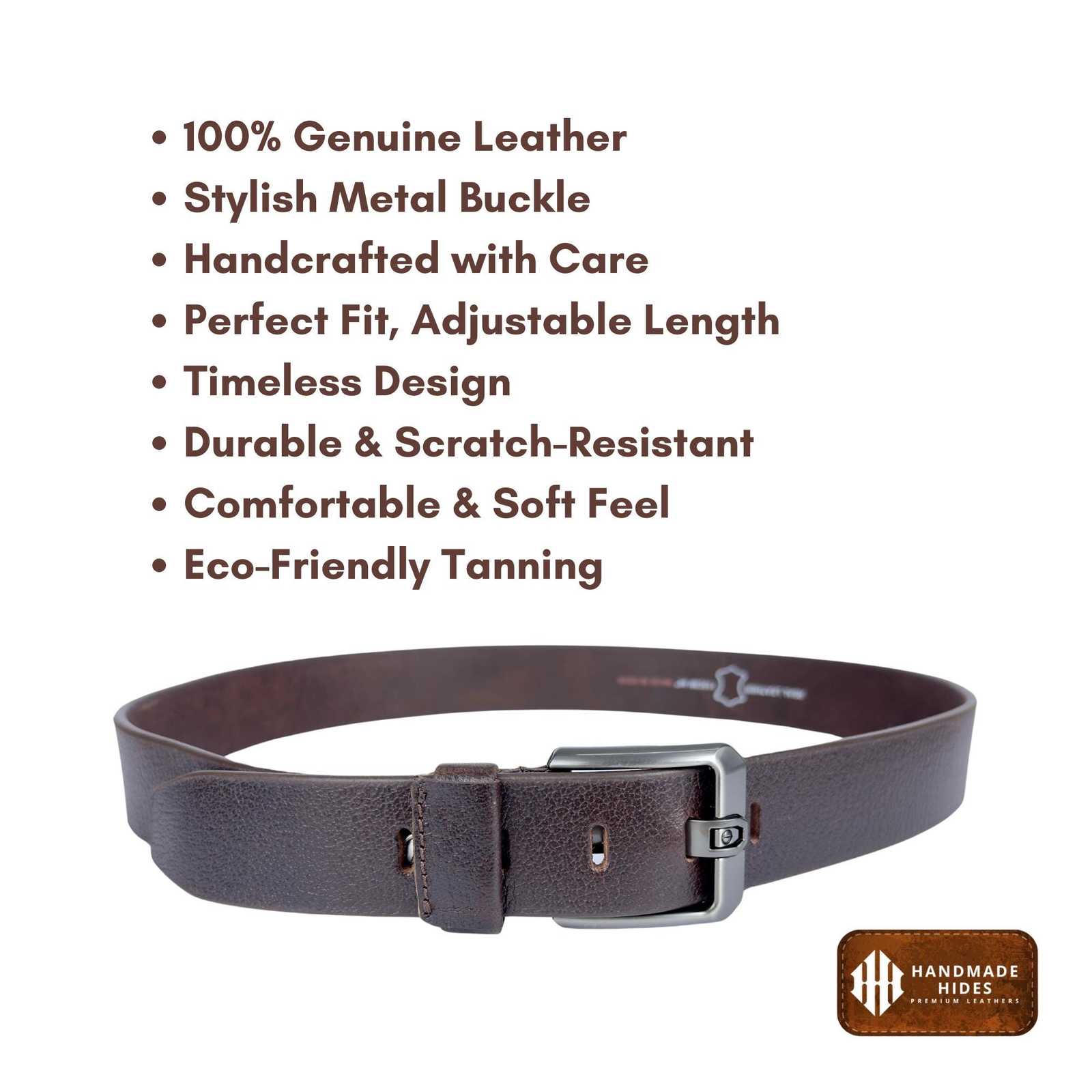 - Handmade Full Grain Brown Leather Belt: Durable Mens Accessory