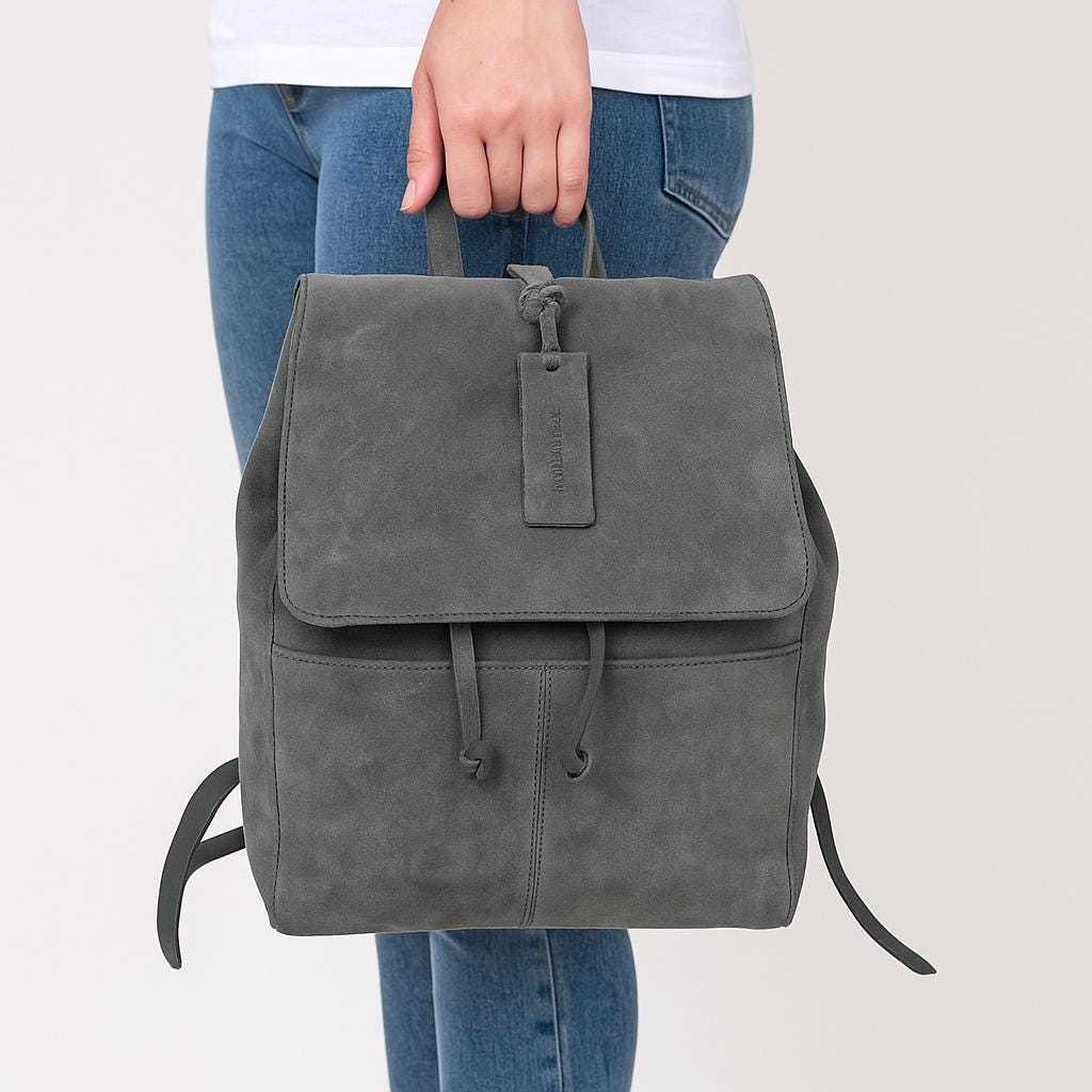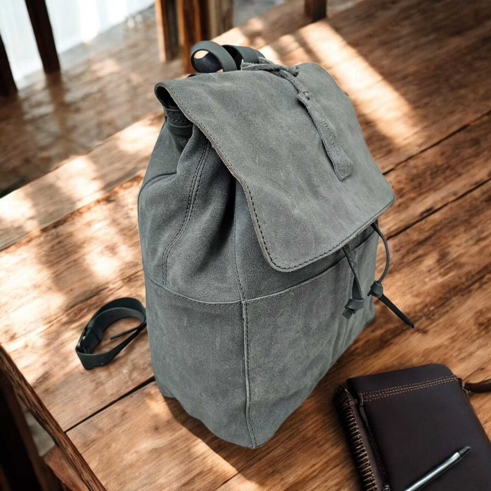 - Handmade Full-Grain Leather Backpack: Grey Multi-Pocket Travel Bag