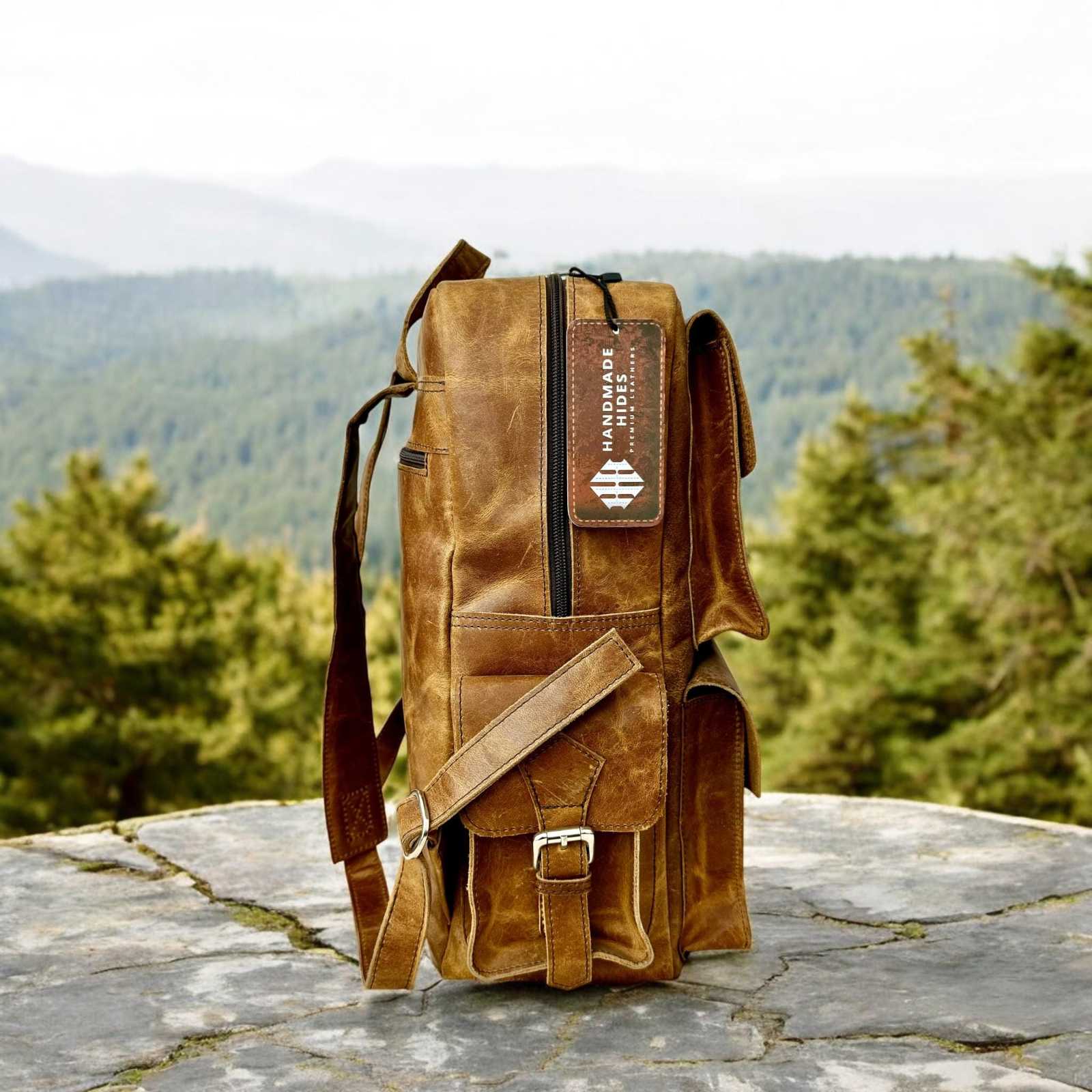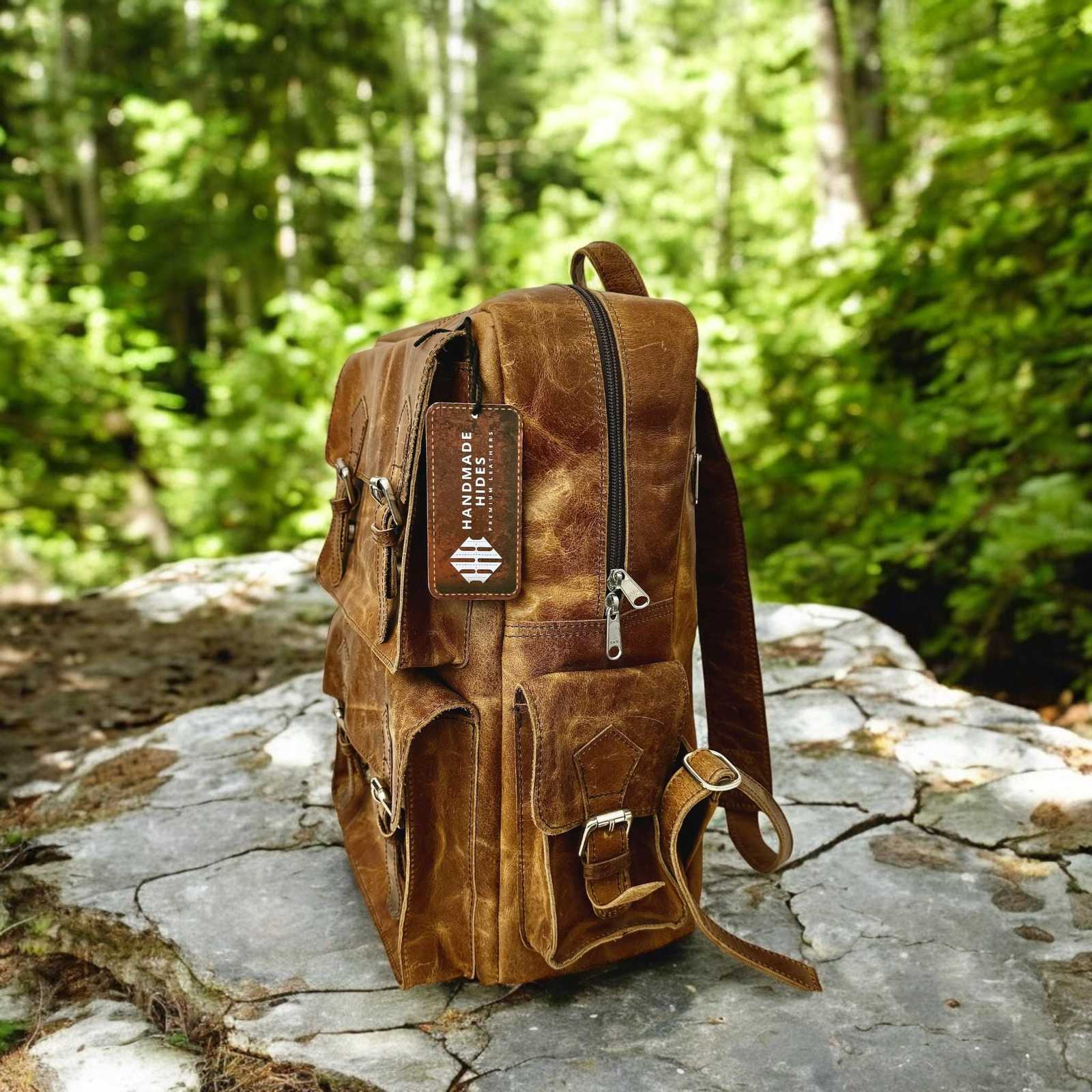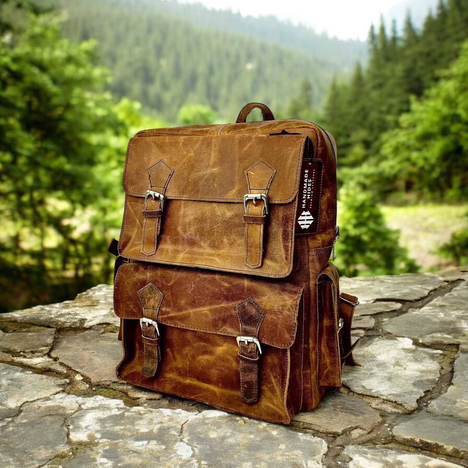 - Handmade Full-Grain Leather Backpack: Rustic Travel Rucksack