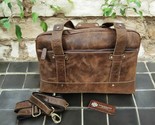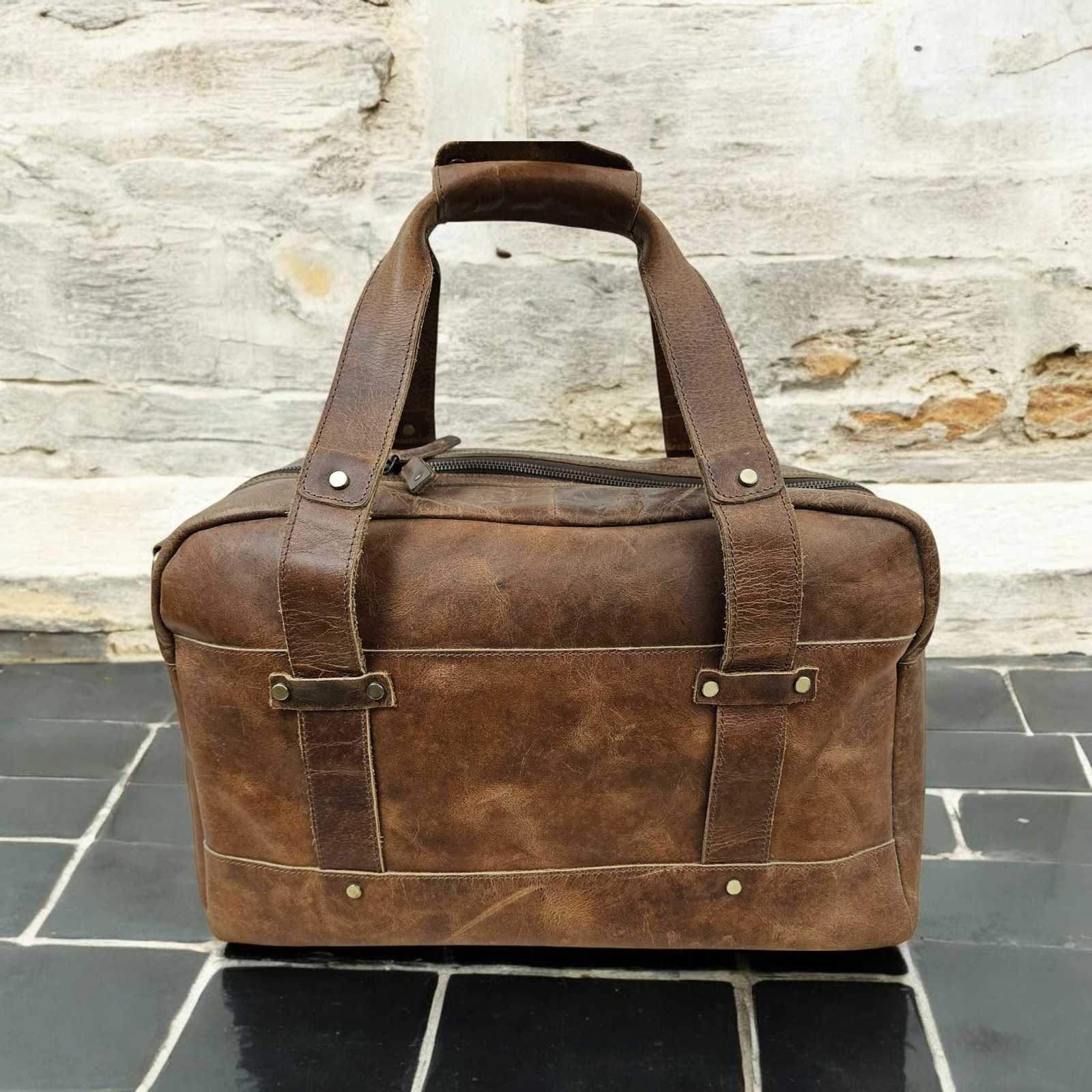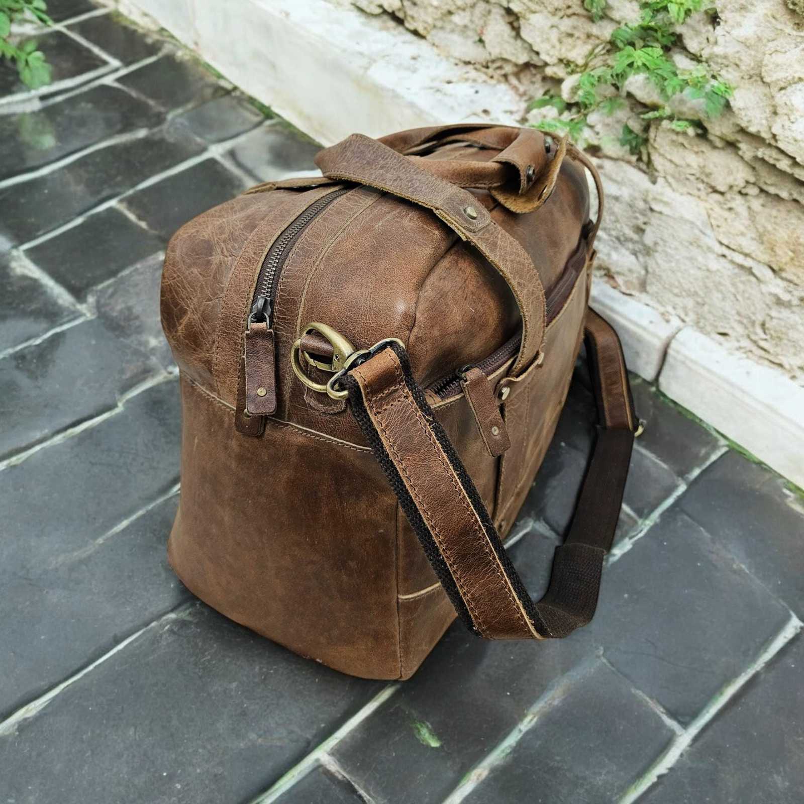 - Handmade Full-Grain Leather Duffle Bag: Vintage Brown Weekender Carry-On