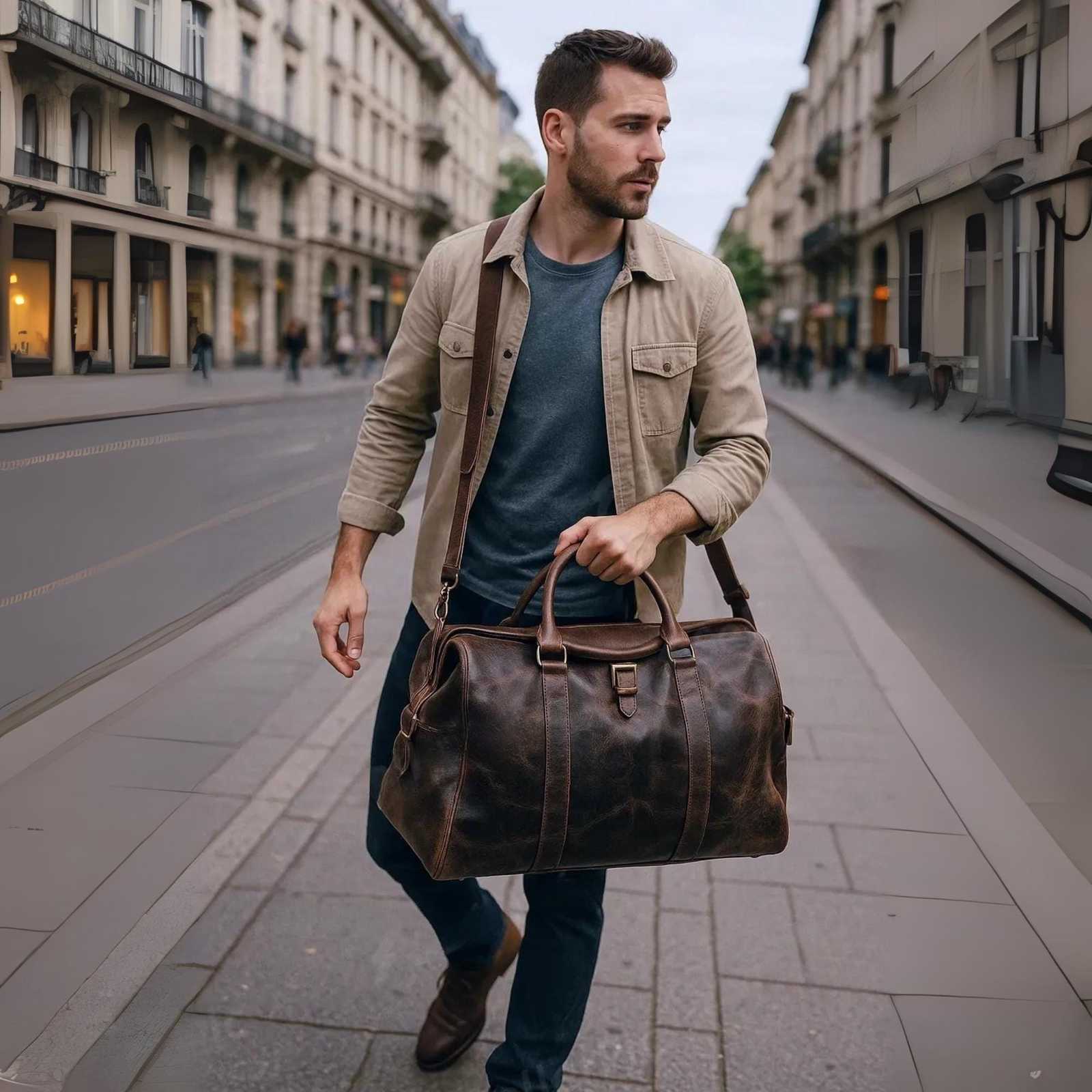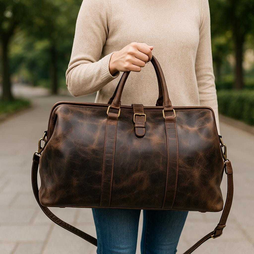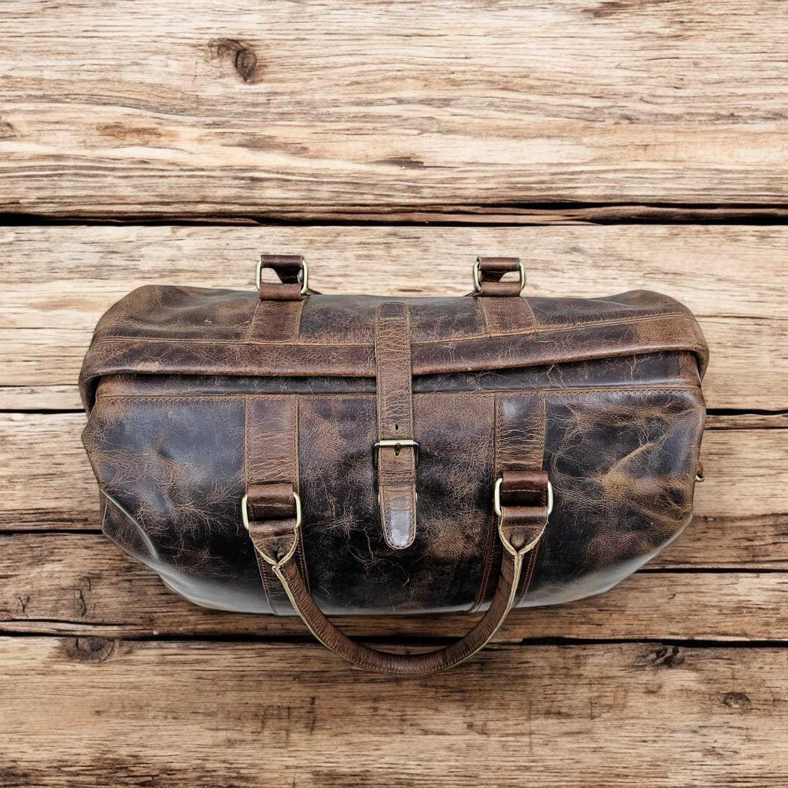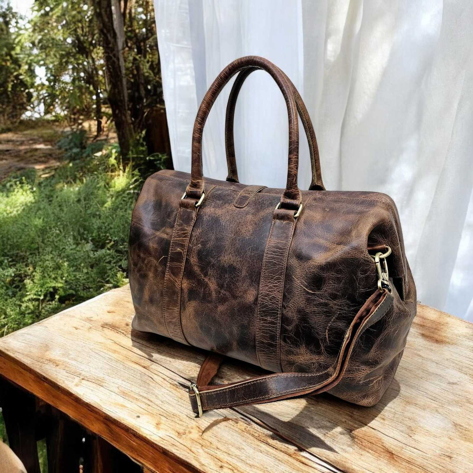 - Handmade Full-Grain Leather Duffle Bag: Vintage Brown Weekender