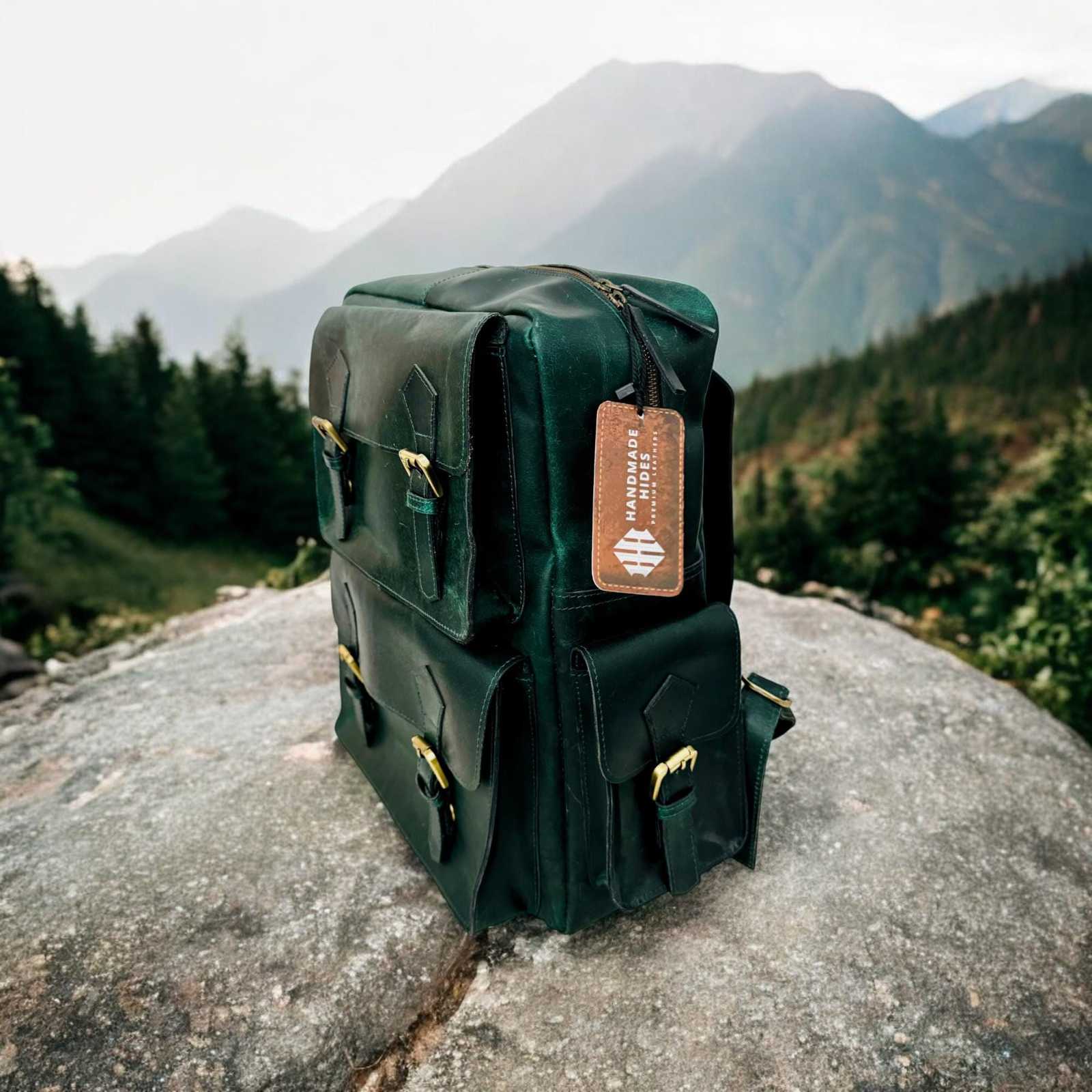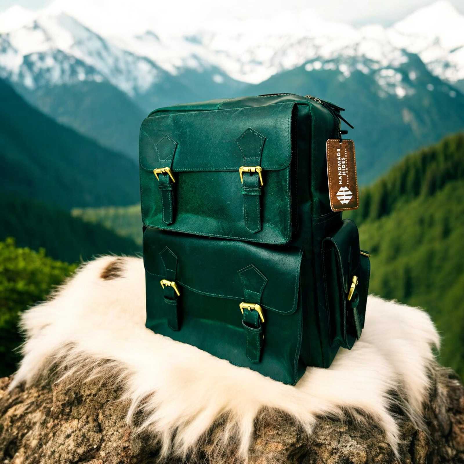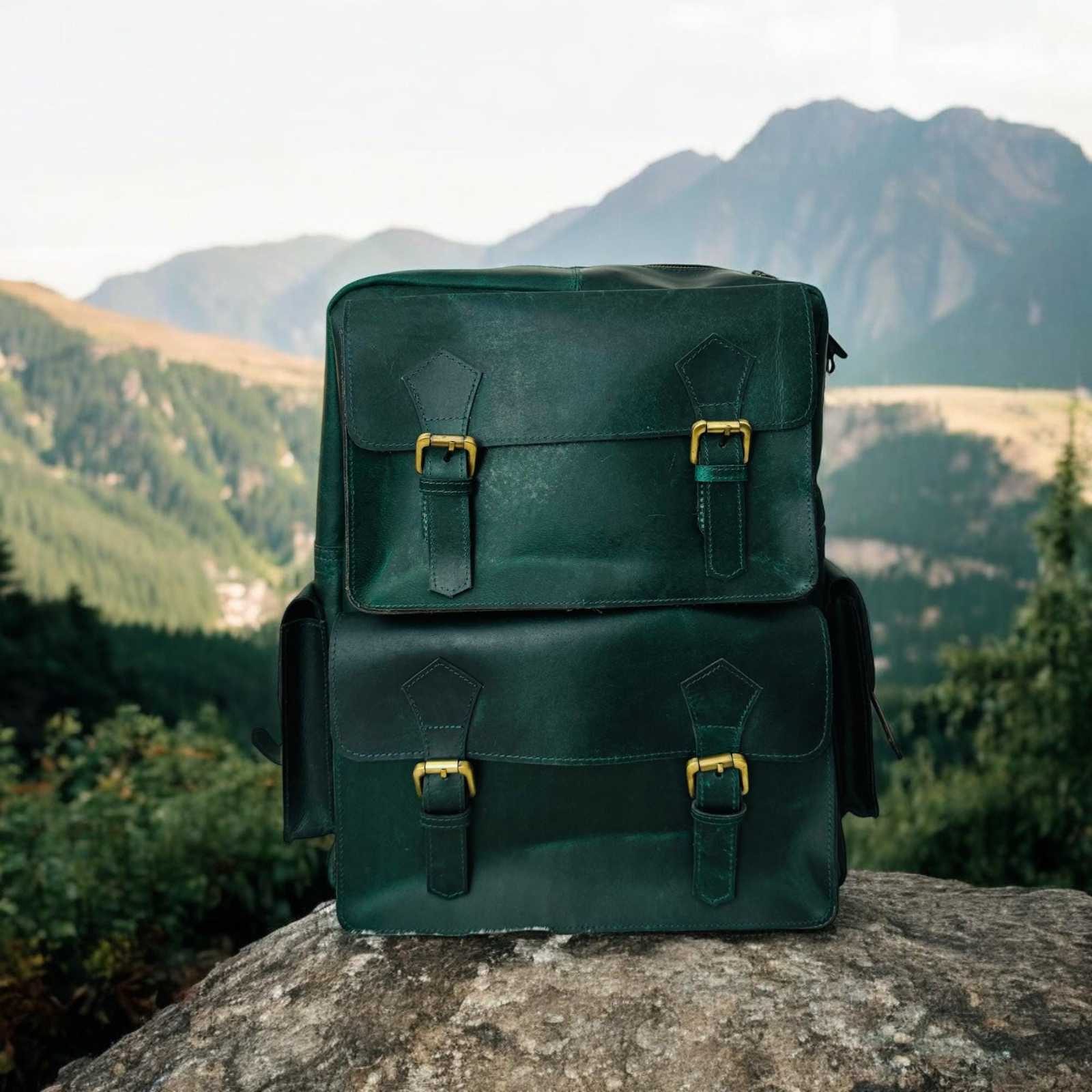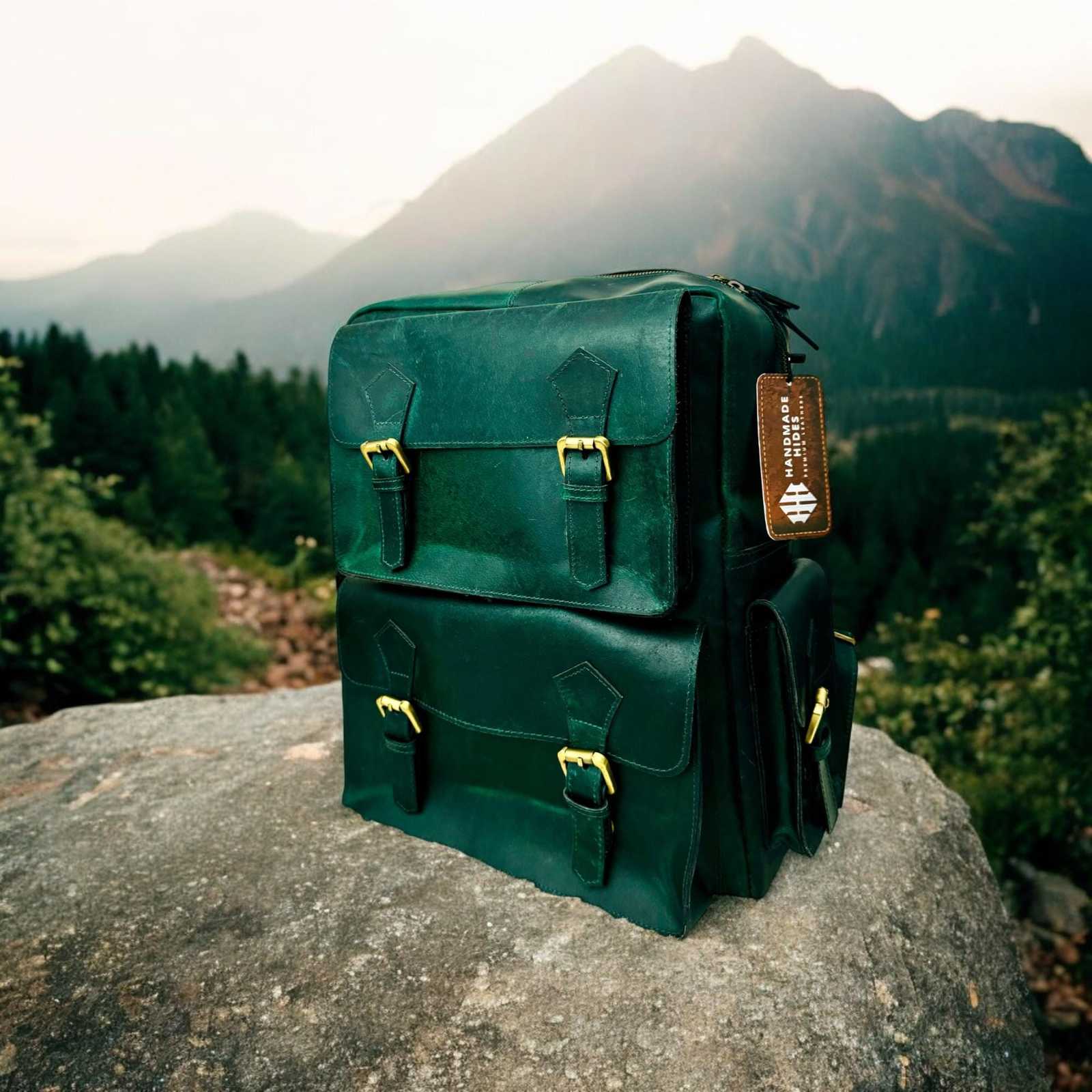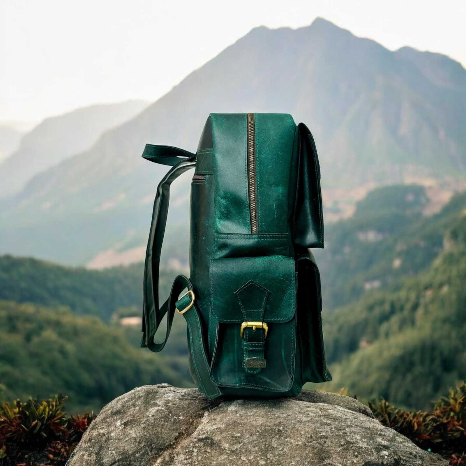 - Handmade Green Leather Backpack: Laptop Travel Bag