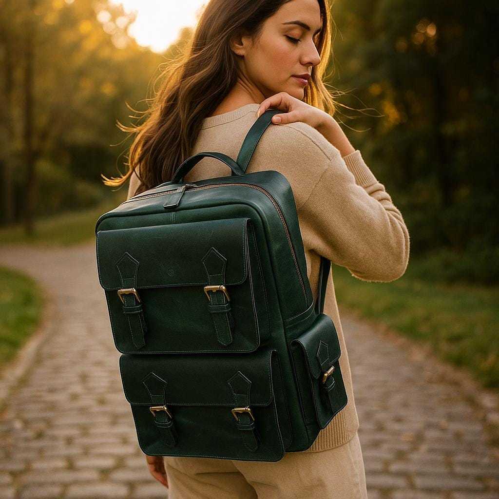 Carry timeless style wherever you go with this handmade green leather backpack. Crafted from full?grain genuine leather, it blends rugged durability with refined elegance — perfect as a laptop bag, travel companion, or daily work bag.