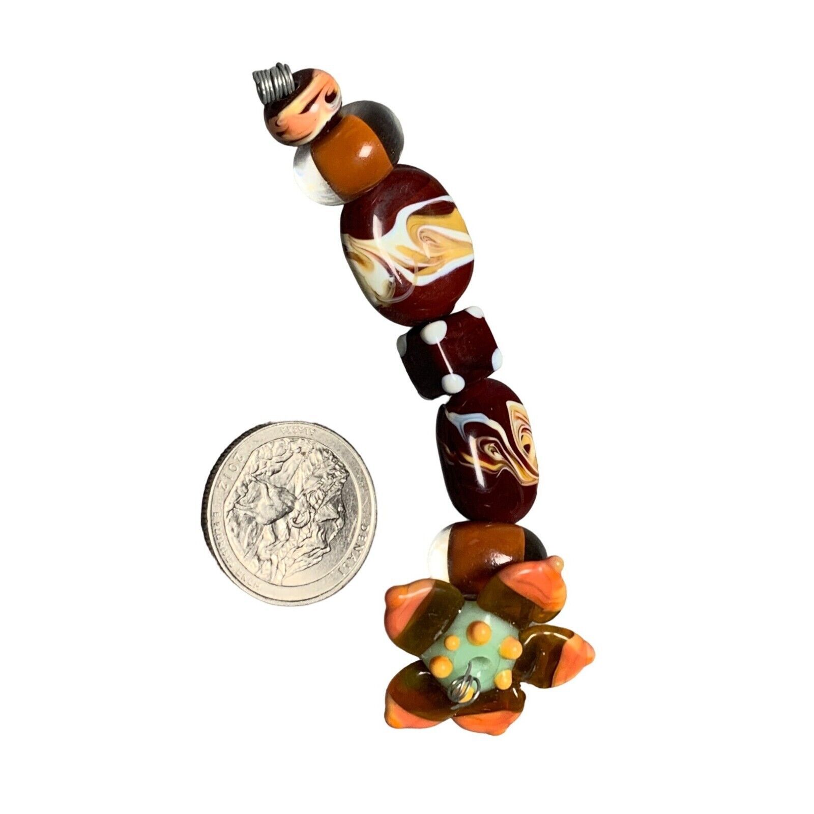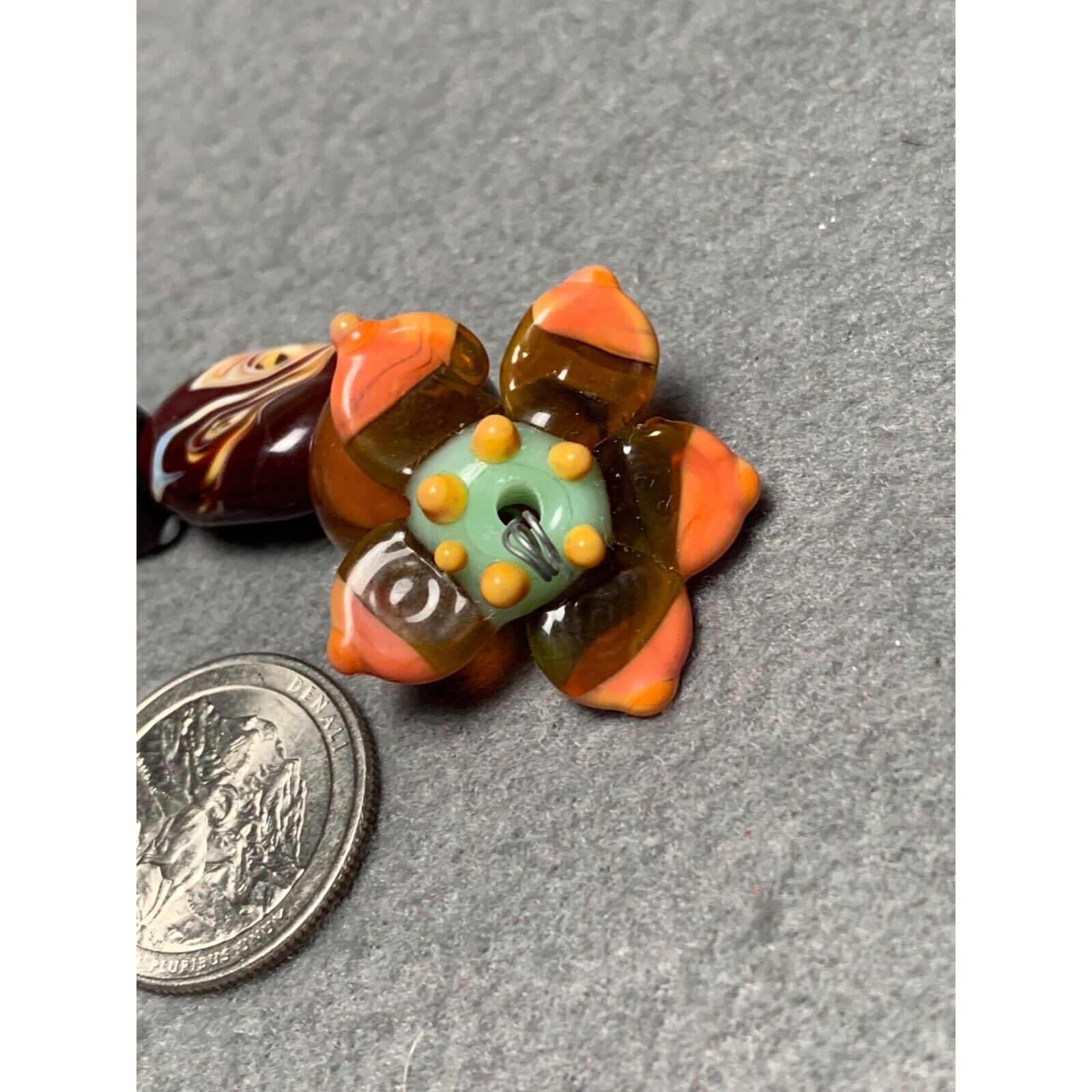 - Handmade Lampwork Glass Bead Set with Colorful Swirls & Flower Accent