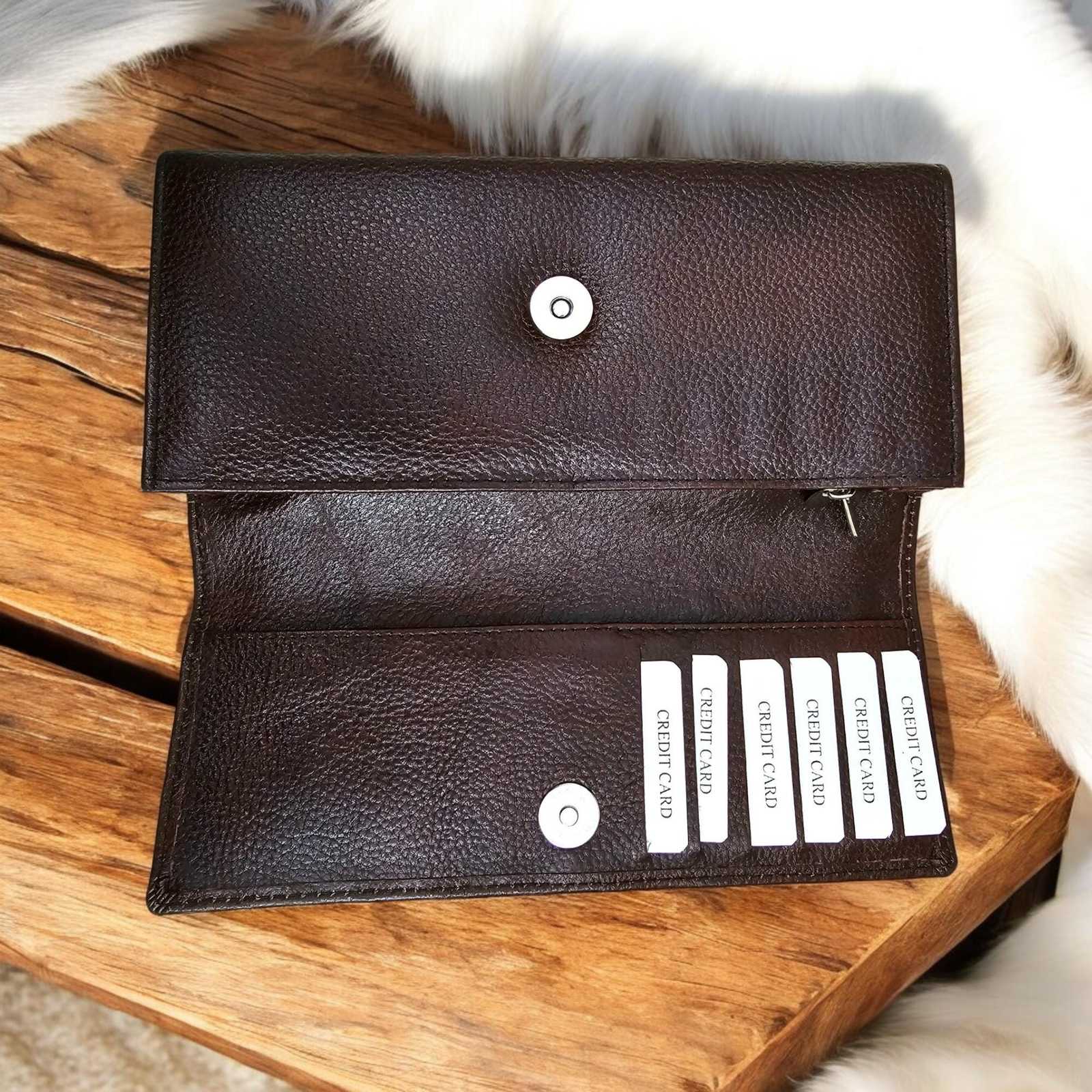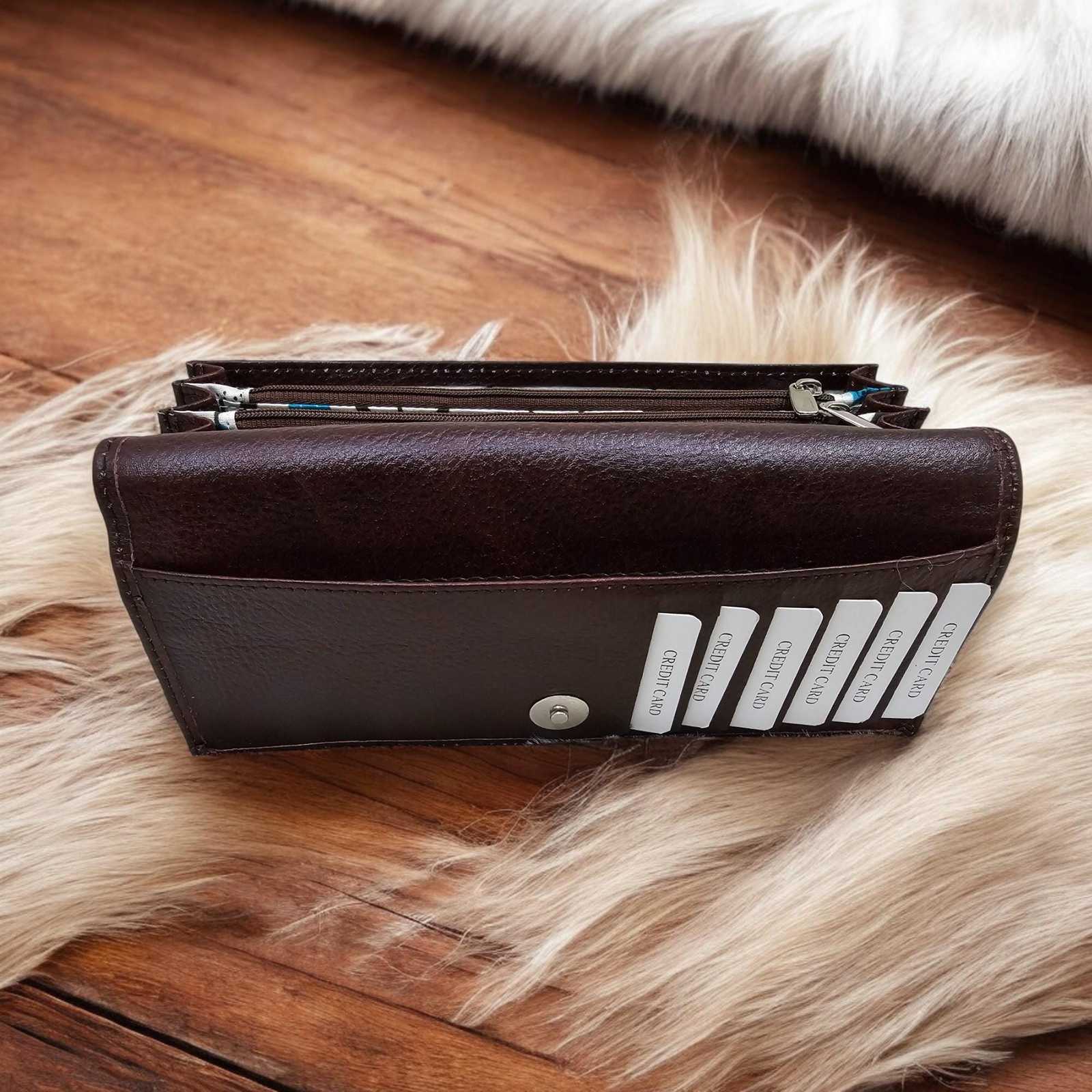 - Large bifold wallet (23.6??11.4??2.5?cm): with 6 card slots, 2 zip pockets, and 4 extra compartments for organization