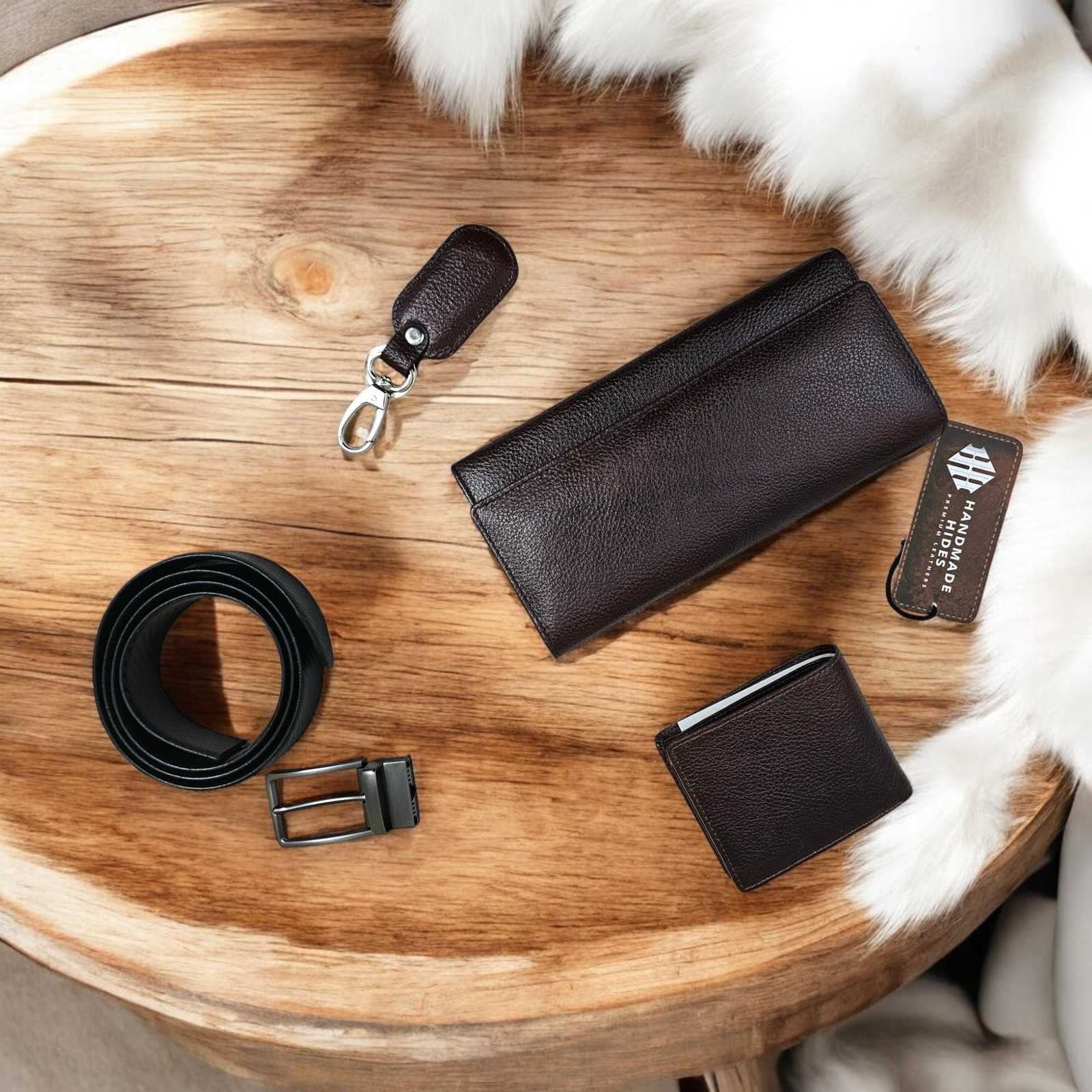 - Handmade Leather Gift Set for Him, Wallets, Reversible Belt, Keychain | Classic