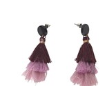 - Handmade Ombre Tassel Earrings Burgundy Pink Gradient Thread Dangle Drop Boho
