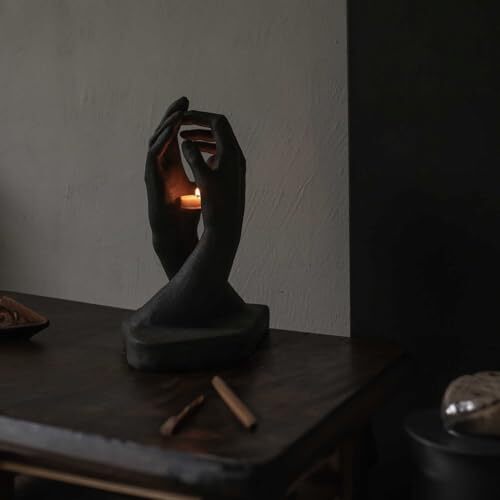 Product description: Elevate your home decor with this Handmade Staggered Hands Candle Holder from Interoknack. This striking ceramic sculpture features two gracefully interlocked hands that create both visual interest and functional purpose. Measuring 8.7 x 6.7 x 11.8 inches, this versatile piece serves as both an artistic statement and a practical holder for candles or incense. The matte neutral finish complements any interior style, from contemporary to eclectic. Meticulously handcrafted with premium ceramic materials, this conversation-starting centerpiece makes a dramatic presentation on mantels, shelves, or tables. The unique design transforms ordinary candle lighting into an artistic experience, making it an ideal gift for art enthusiasts or anyone who appreciates distinctive home accessories. This sculptural piece effortlessly combines form and function for lasting beauty in any room.