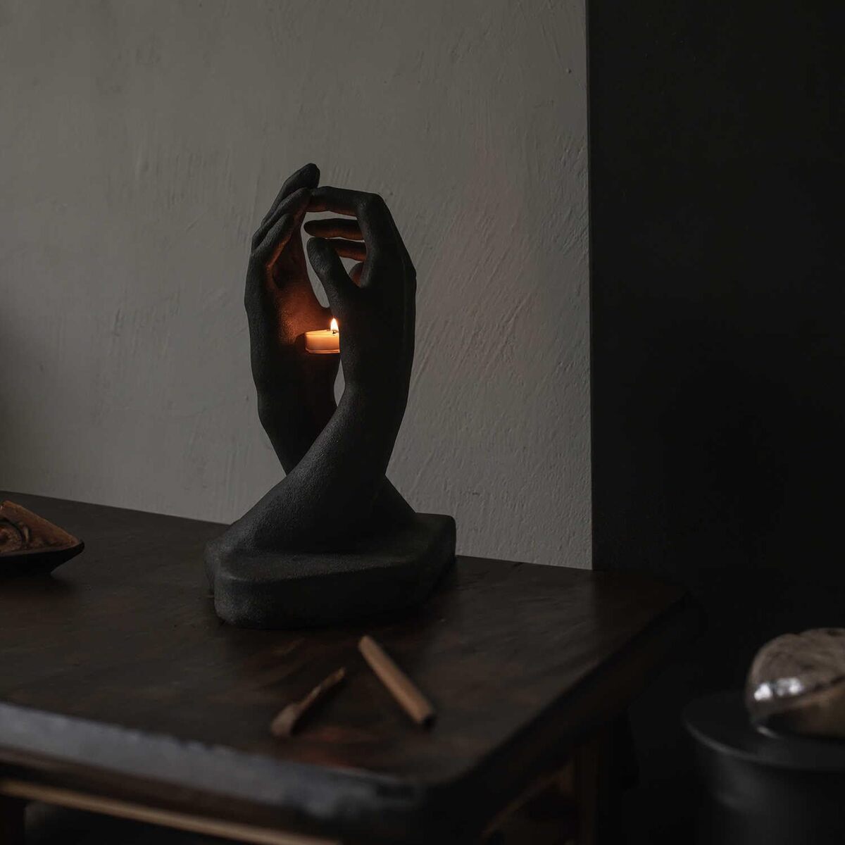 - Handmade Staggered Hands Candle Holder, Artisan Minimalist Scented Candle and In