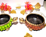 - Handmade Terracotta Clay Tortoise bowl in golden and green colour for Key Holder