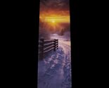 This handmade bookmark features a breathtaking winter sunrise, casting warm golden light across a snowy path and wooden fence. The tranquil scene makes it a perfect companion for cozy winter reading.