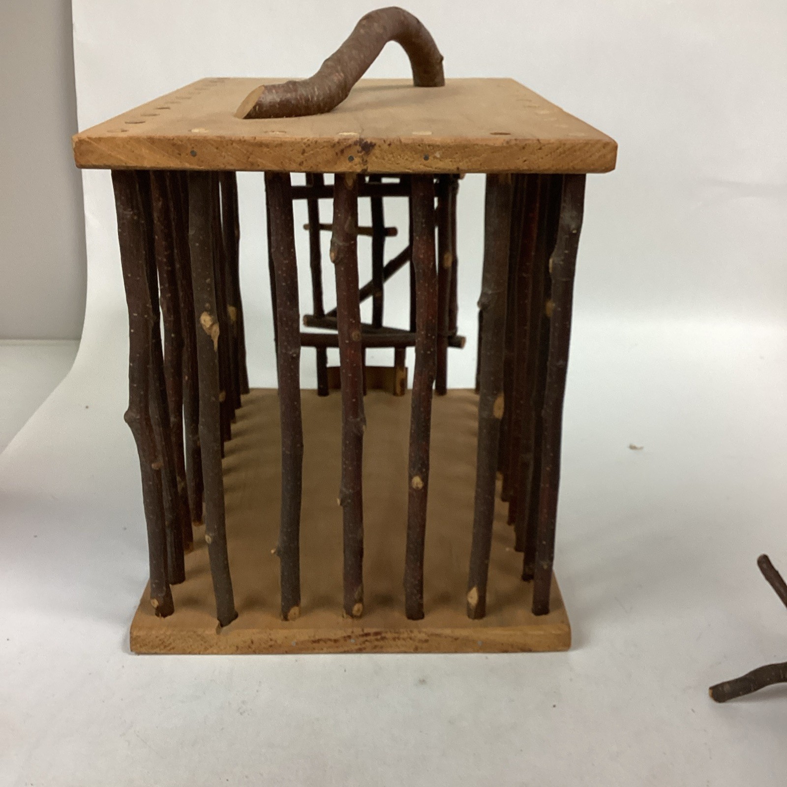 Handmade Wooden Cage With Carved Deer - Made By Wabi Wood Shop In Maine. Both items in used but very good condition. For decoration only. The case measures 16x11x13 and the deer measures 9?H