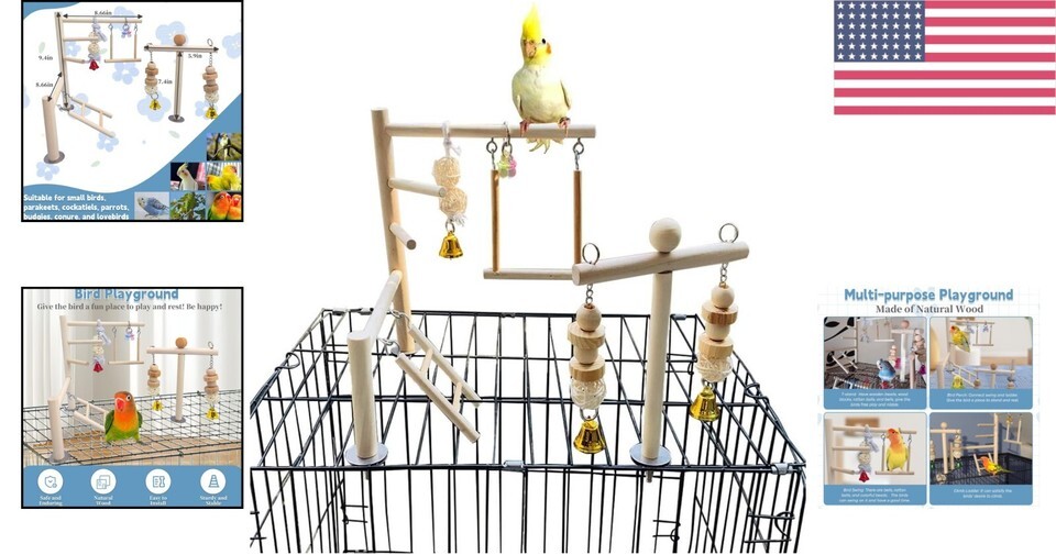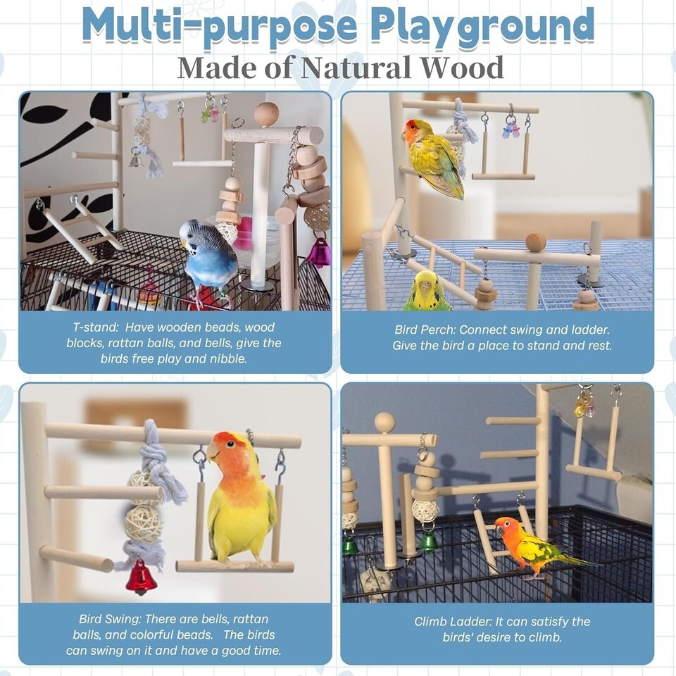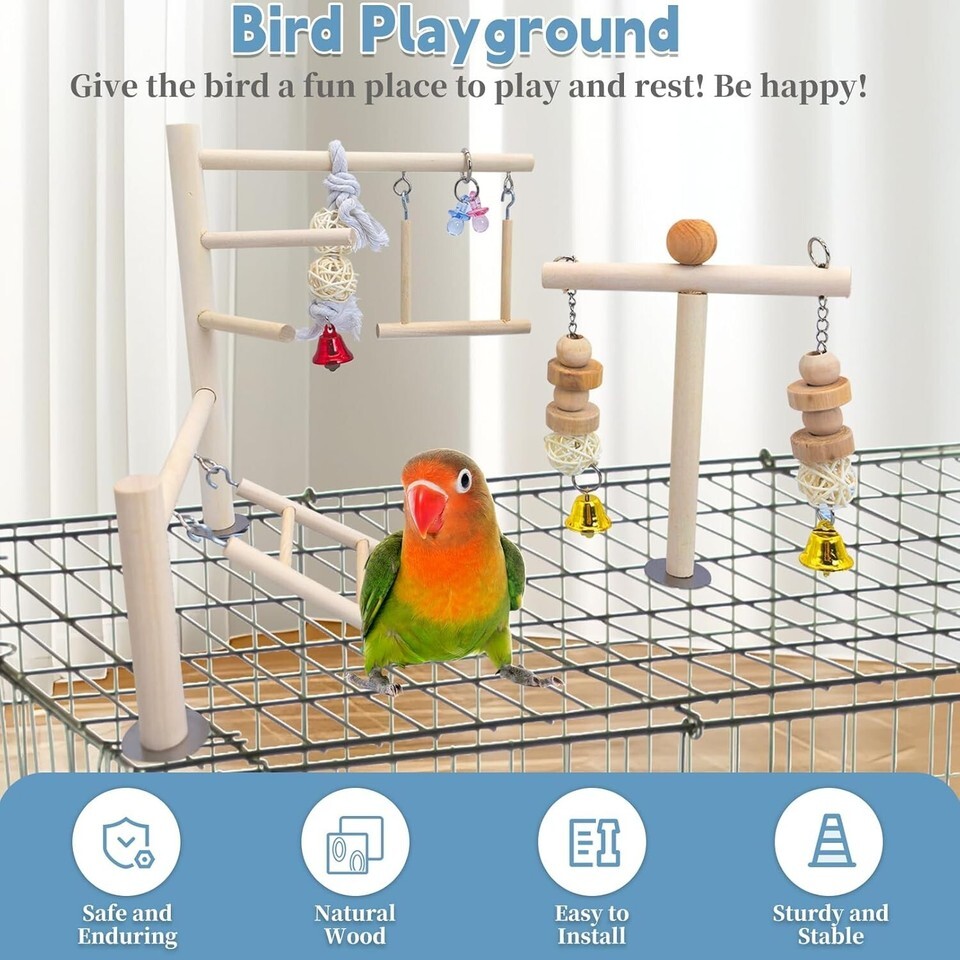 - Handmade Wooden Play Gym for Small Birds - Fun Perches & Climbing Accessories