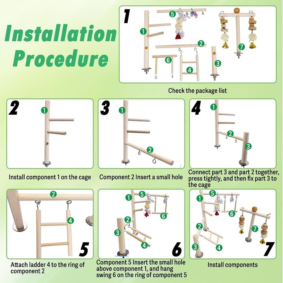 Self-Assembly: Includes a delightful assortment of accessories such as perches, T-racks, swings, ladders, rattan balls, and bells - all require assembly for an engaging bonding experience with your pet.