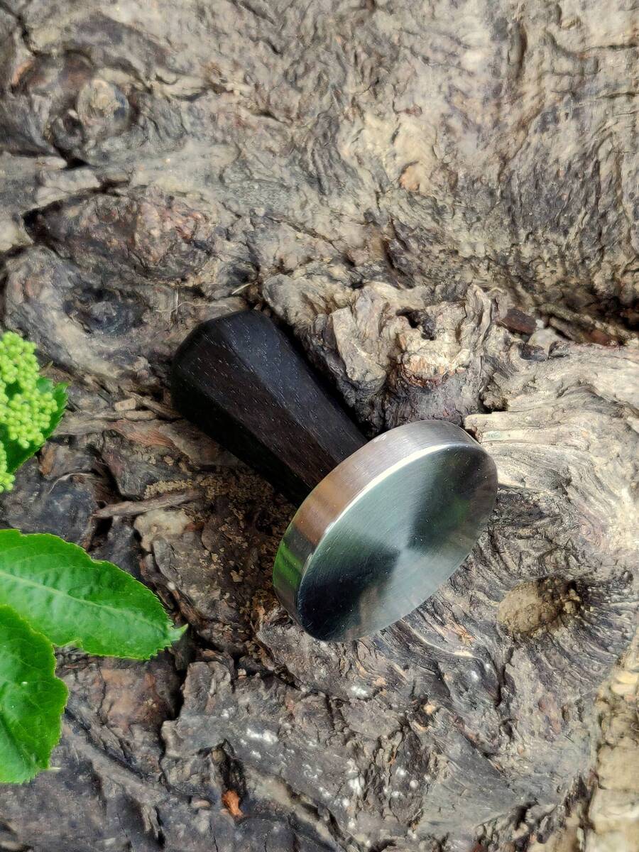 Handmade coffee tamper, 51mm Bog Oak tamper, Stainless steel tamper, Midnight bl