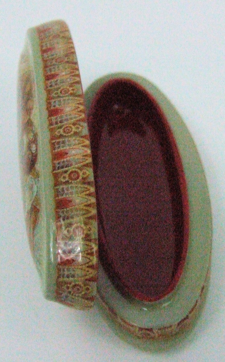 A beautiful Fedoskino Lacquer Box by the artist Bychkova titled "A Lady with her Cat". This box is hand painted and signed by Bychkova. This box is an unusual Fedoskino box as it has a box shaped like a cigar. The box itself has a Cat, very comfortable, with its mistress relaxing in the background. The size of the box itself 1.25 X 3 x .8 inches ( .5 x 1.5 x .3 cm). The box comes with her signature. Most artists don't have their respective schools authenticate their pieces so it is not absolutely necessary needed to authenticate the box usually if an artist signs the box that authenticates the piece. If no signature one should question the authenticity of the box.