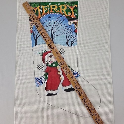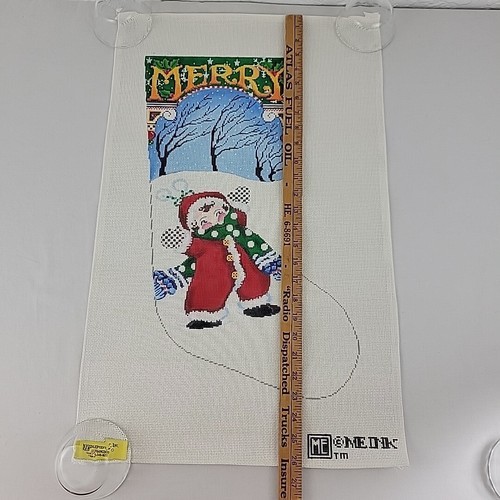 - Handpainted Needlepoint Canvas XMAS Stocking Mary Engelbreit Multi Color 23" NEW