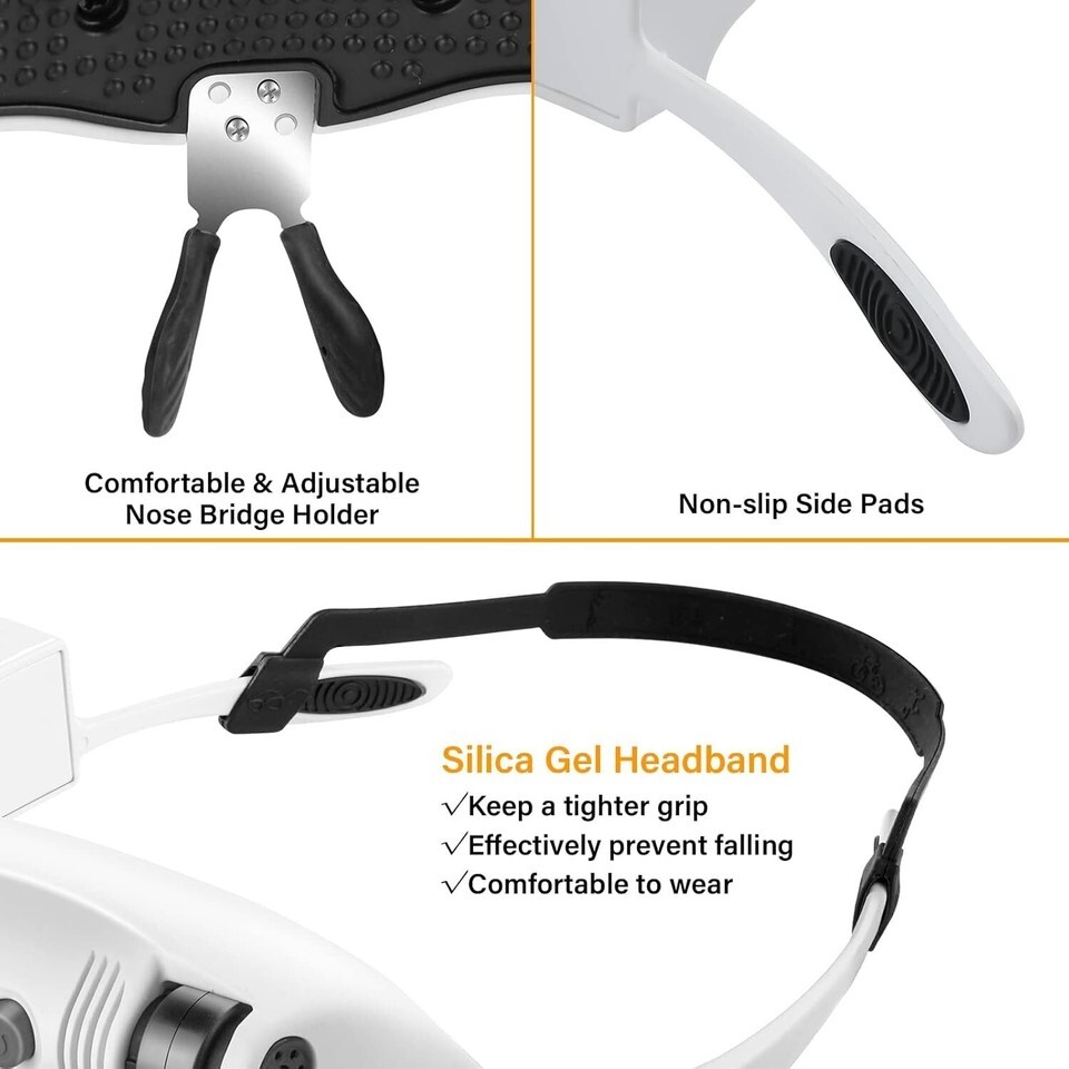 Set Includes: Magnifier with Light,Magnifying Lenses,Headband