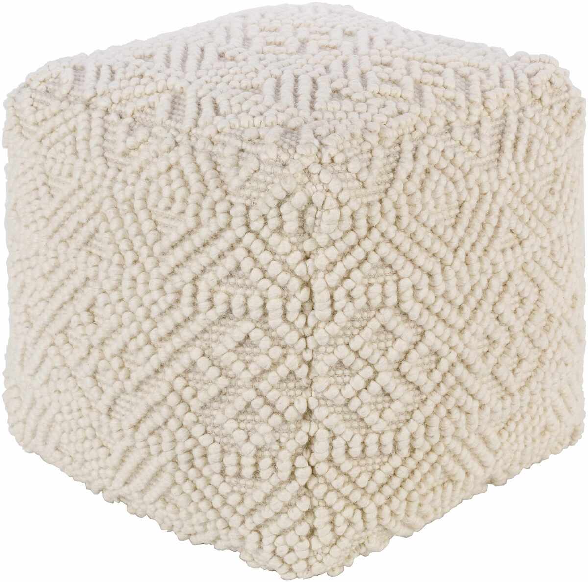 Handwoven Cream Mesudiye Pouf in Transitional Style