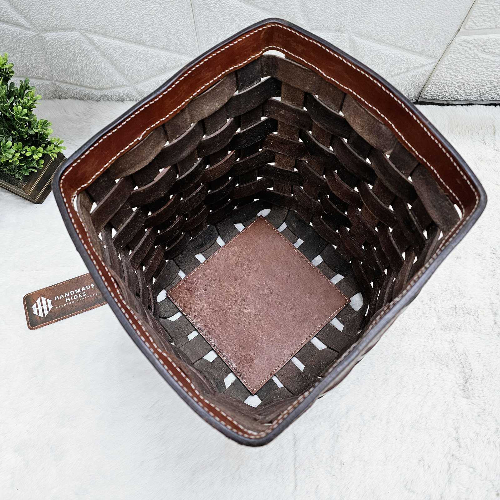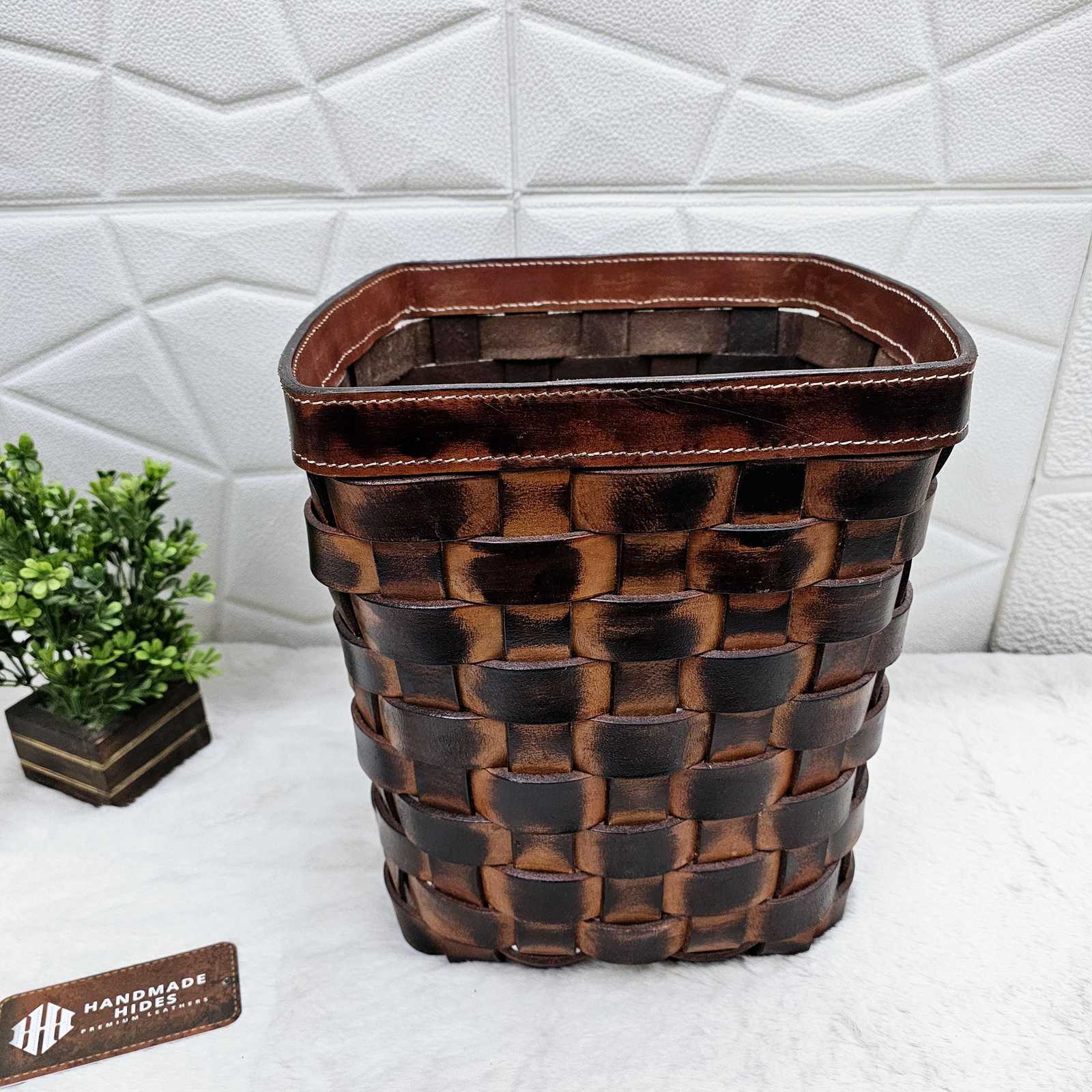 Handwoven Leather Wastebasket – Luxury Meets Function