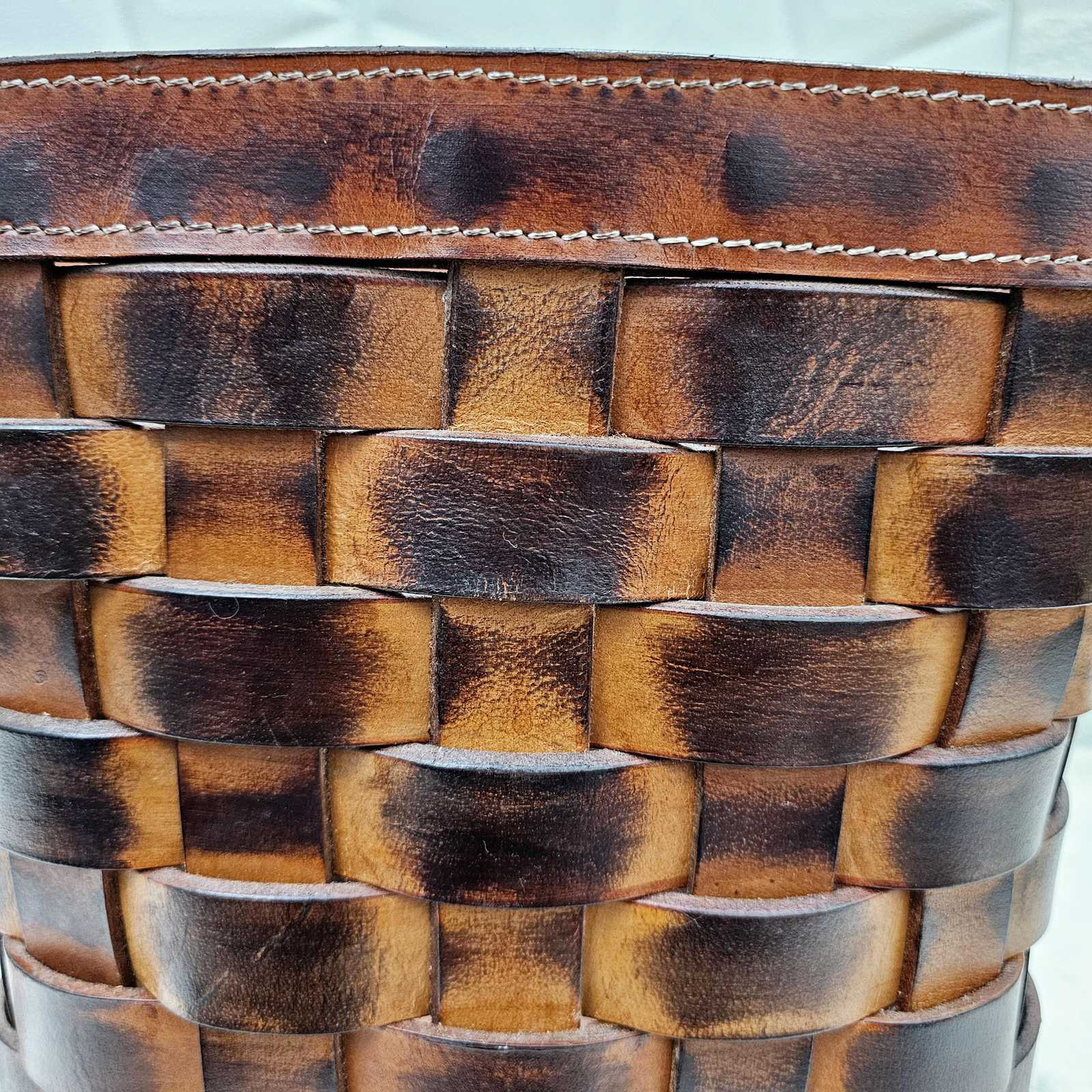 Add a touch of timeless sophistication to your space with this handmade leather wastebasket. Crafted from 100% genuine leather in an intricate handwoven pattern, this leather goods piece combines artistry, durability, and practicality. Perfect for luxury offices, modern homes, or boutique hotel interiors.