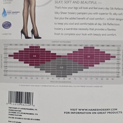 - Hanes Silk Reflections High Waist Control Top Pantyhose Size EF Little Color